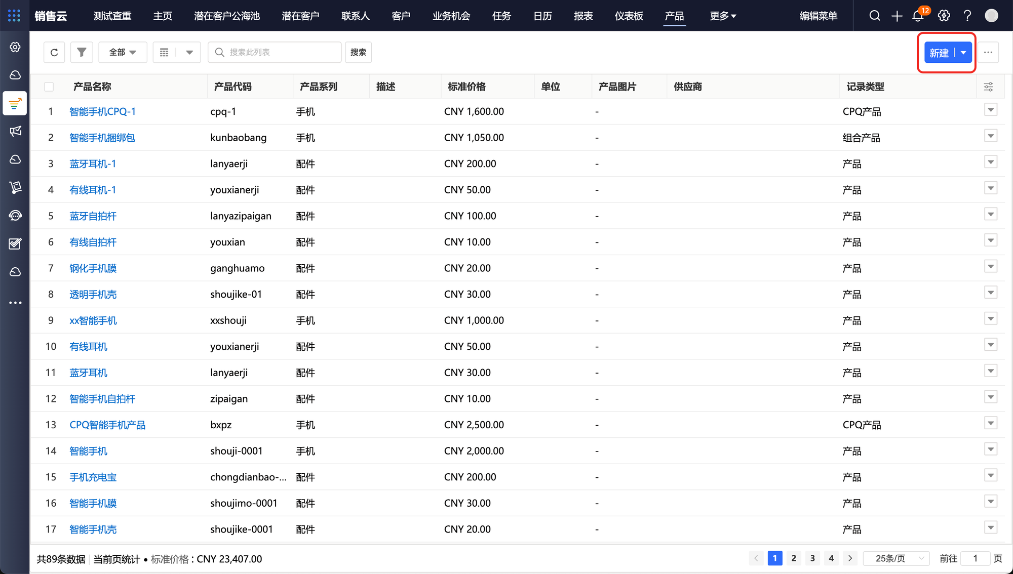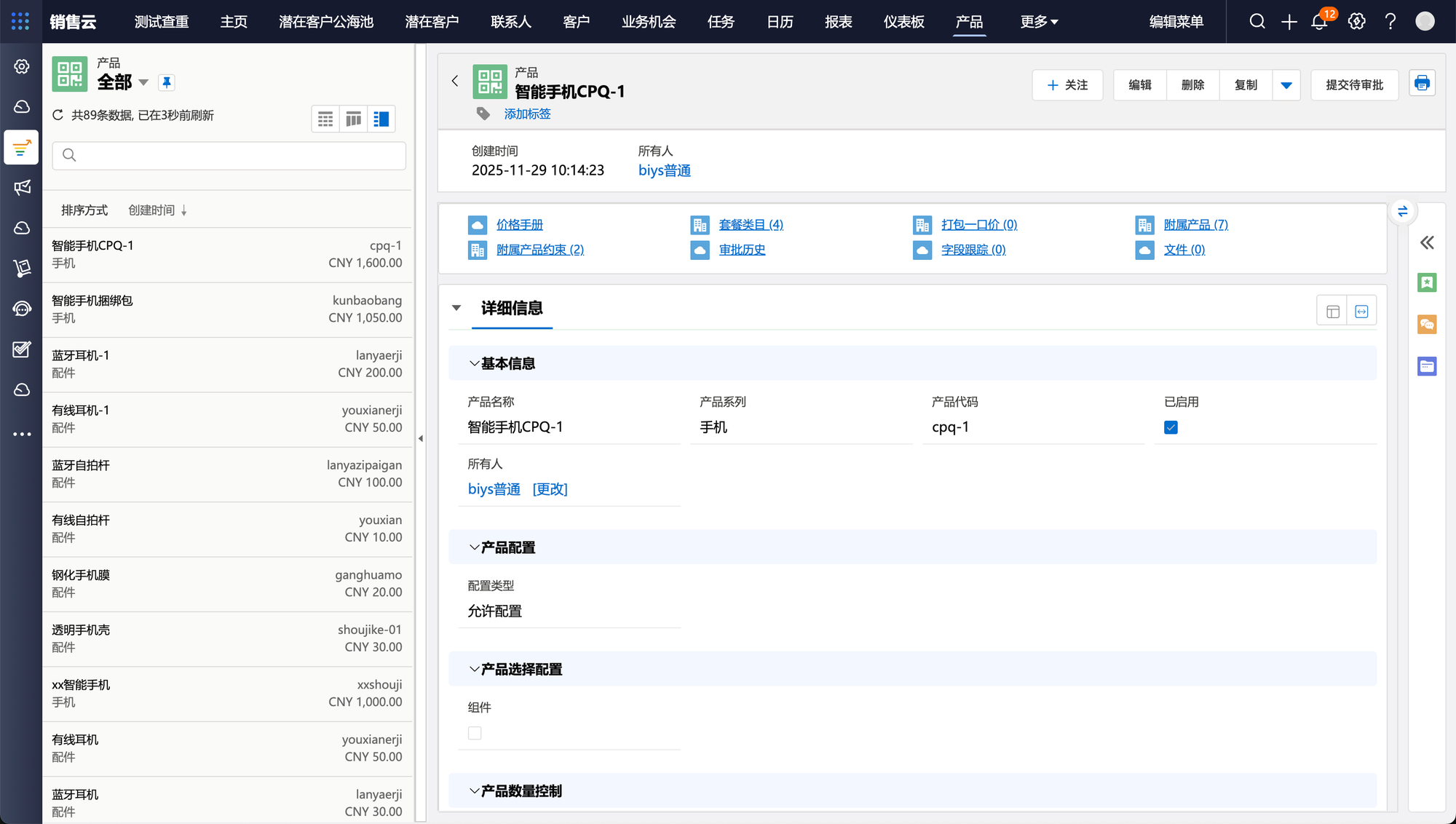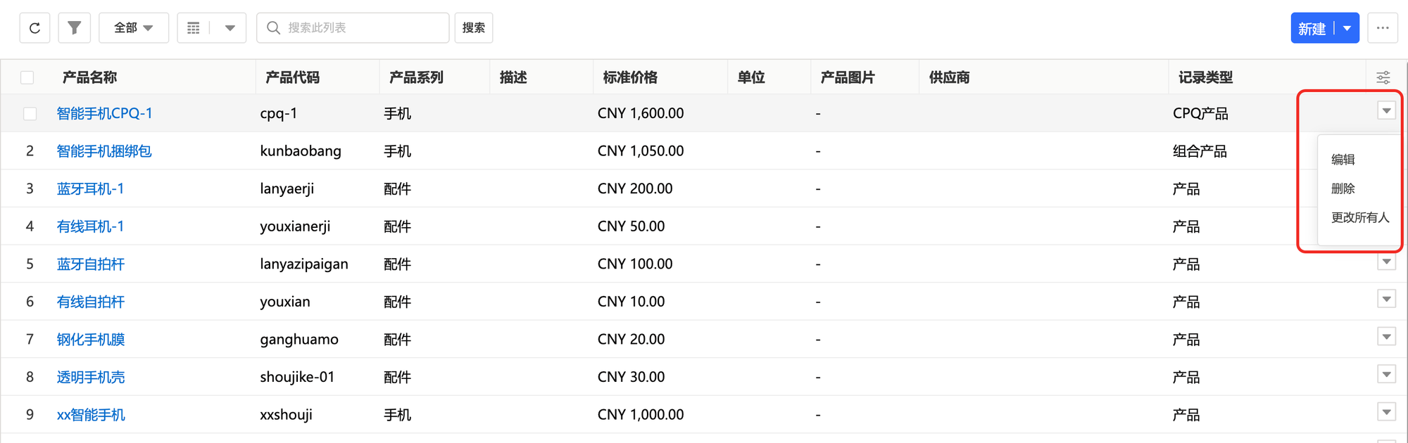 产品是企业对外出售的所有产品和服务及相关价格的基础目录。在销售工作开始之前,需要在系统内预置产品信息,管理产品系列、产品价格、产品上下架等信息。