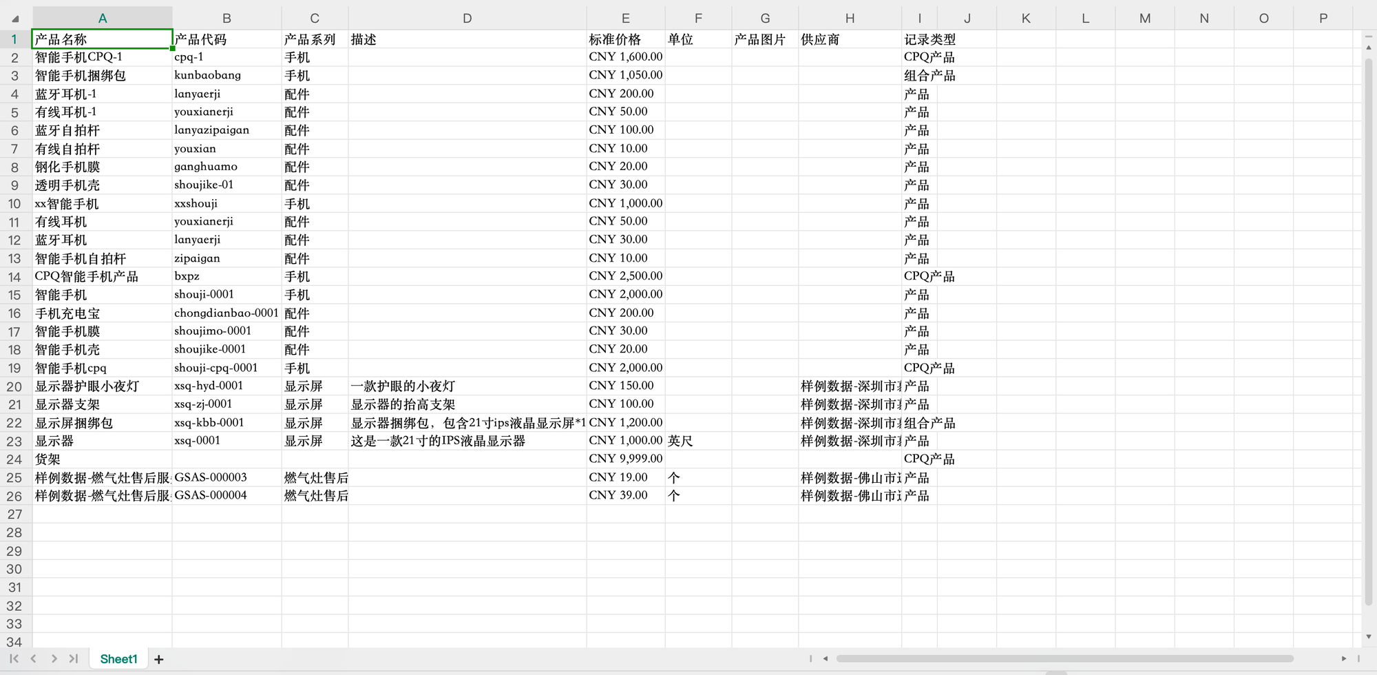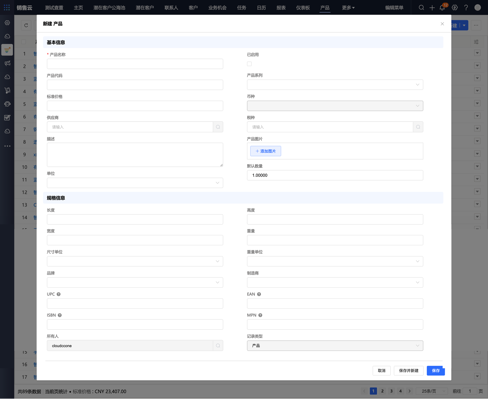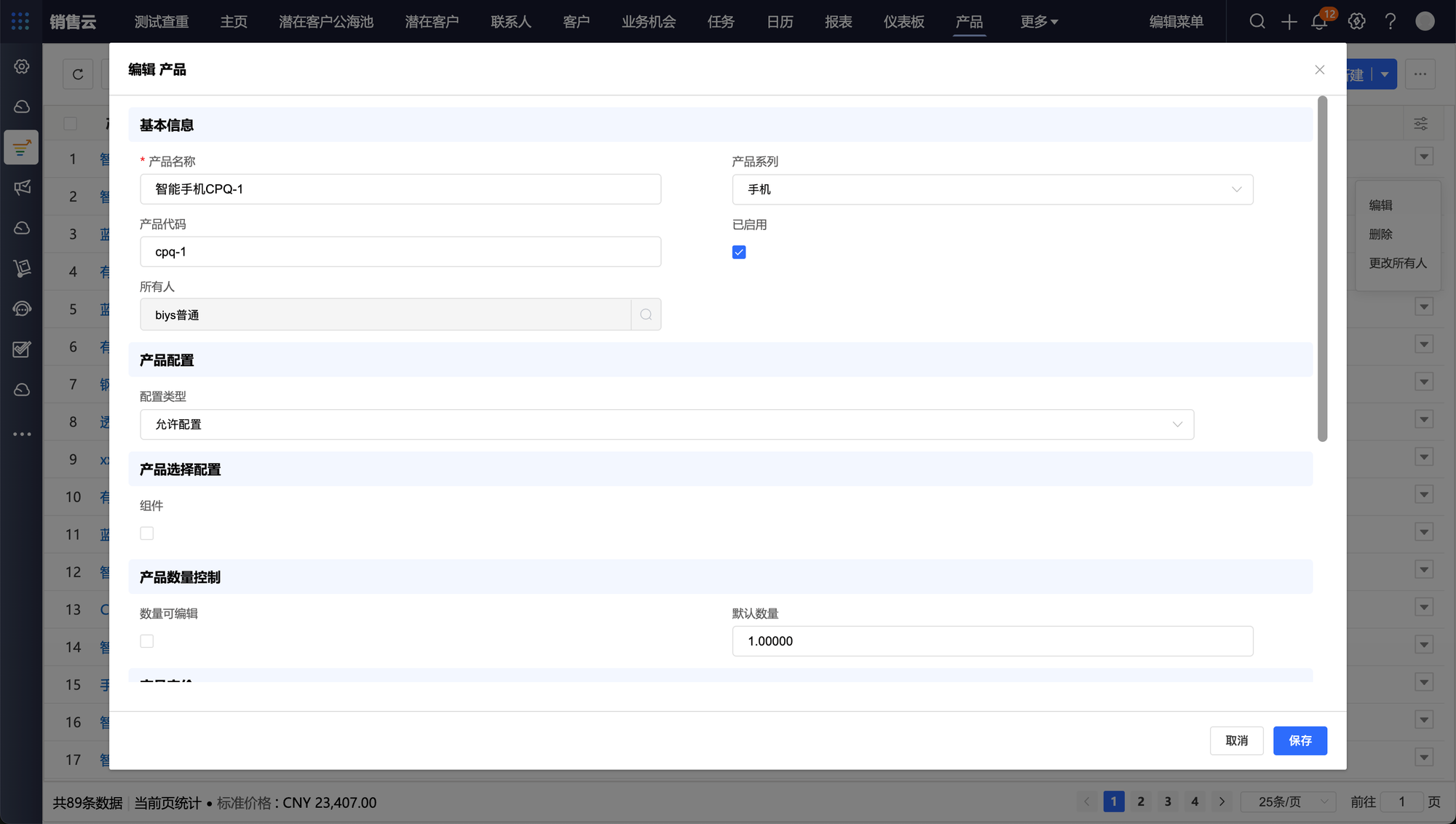 产品是企业对外出售的所有产品和服务及相关价格的基础目录。在销售工作开始之前,需要在系统内预置产品信息,管理产品系列、产品价格、产品上下架等信息。