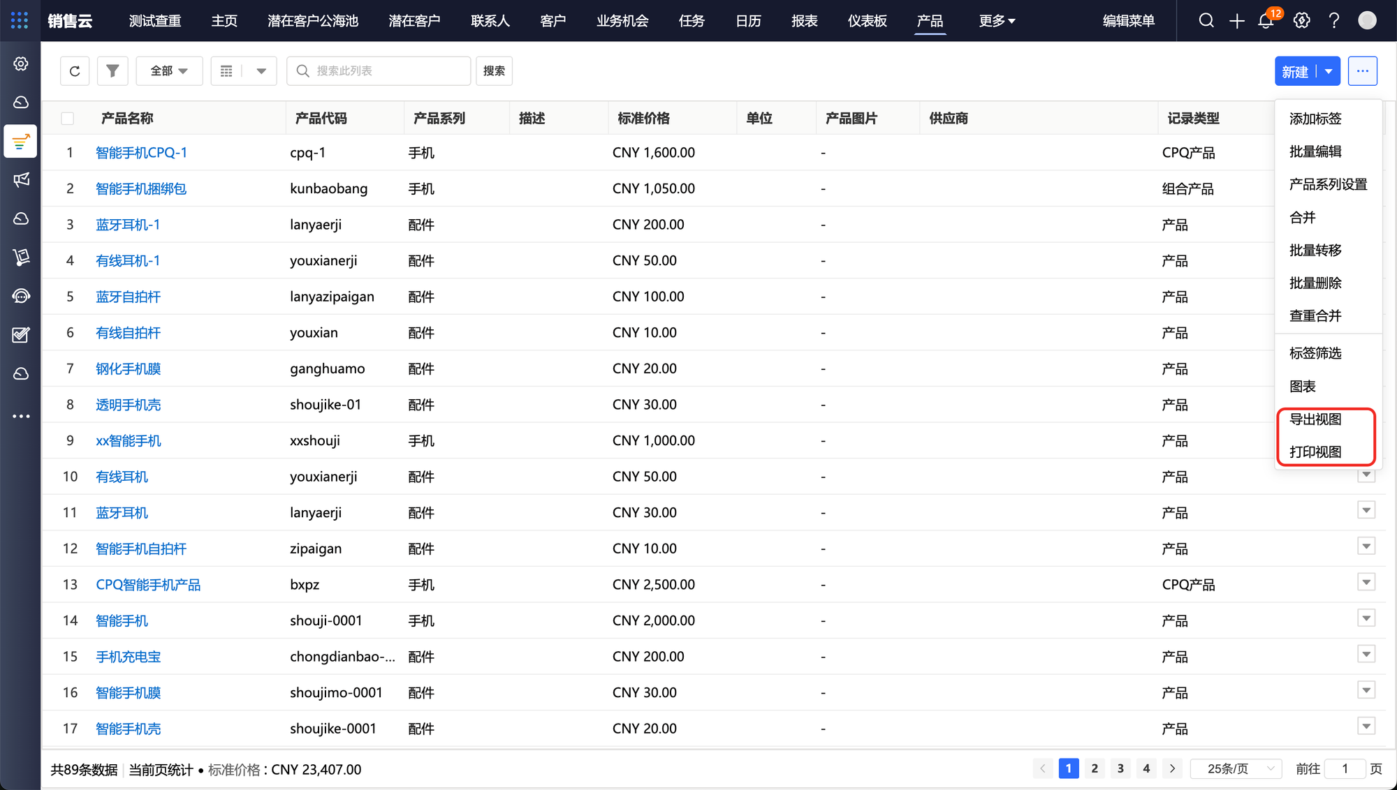2.将所有产品信息导出为 Excel 表格,或预览、打印产品列表