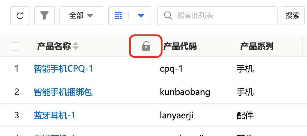 ②你可以将每一列拖拽到你想要的页面上的水平位置。可在表头区域悬停出现🔒图标以锁定该列,最多支持三个列锁定在页面最左侧。