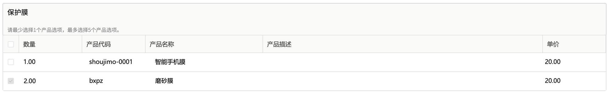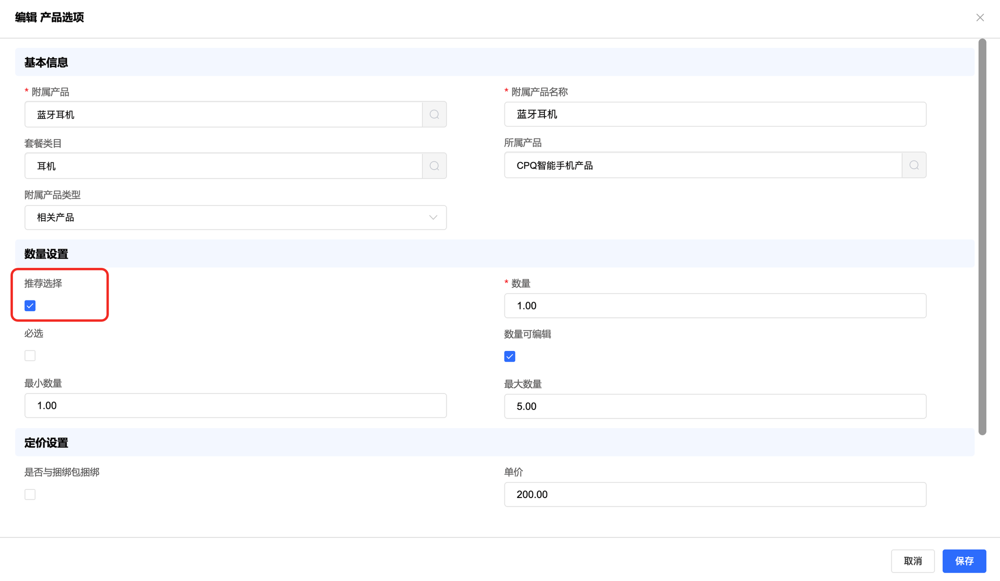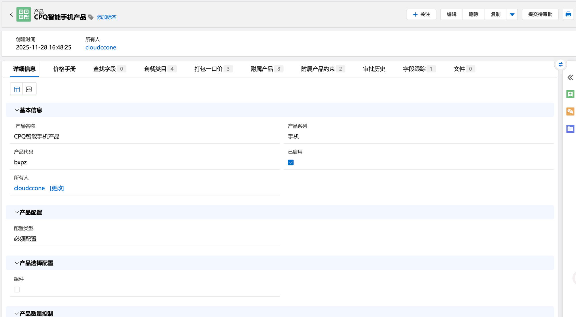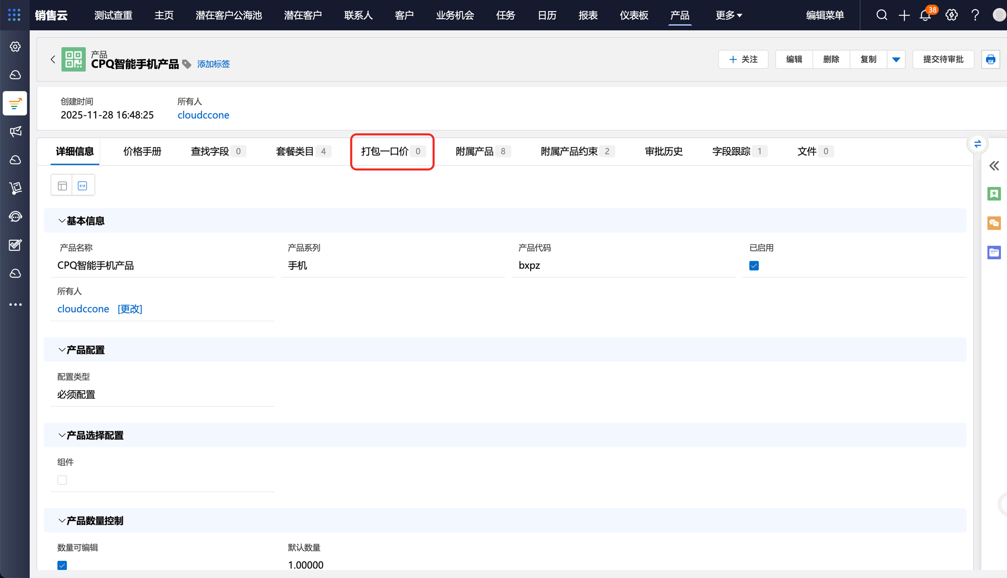 • 必须配置:在报价时,若选择添加该产品至报价单,则必须跳转到配置产品页面,配置该捆绑包下的子产品及其数量。