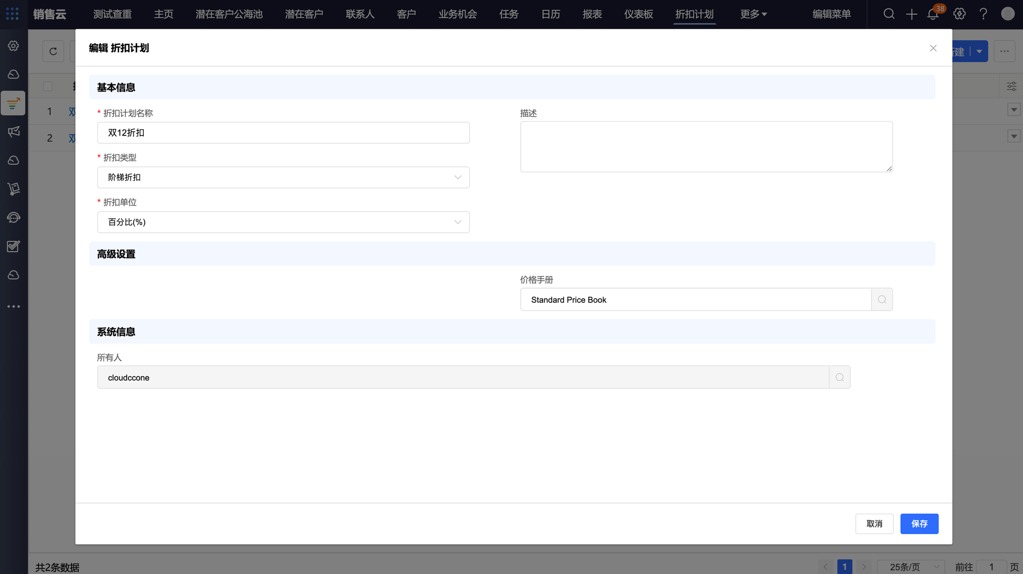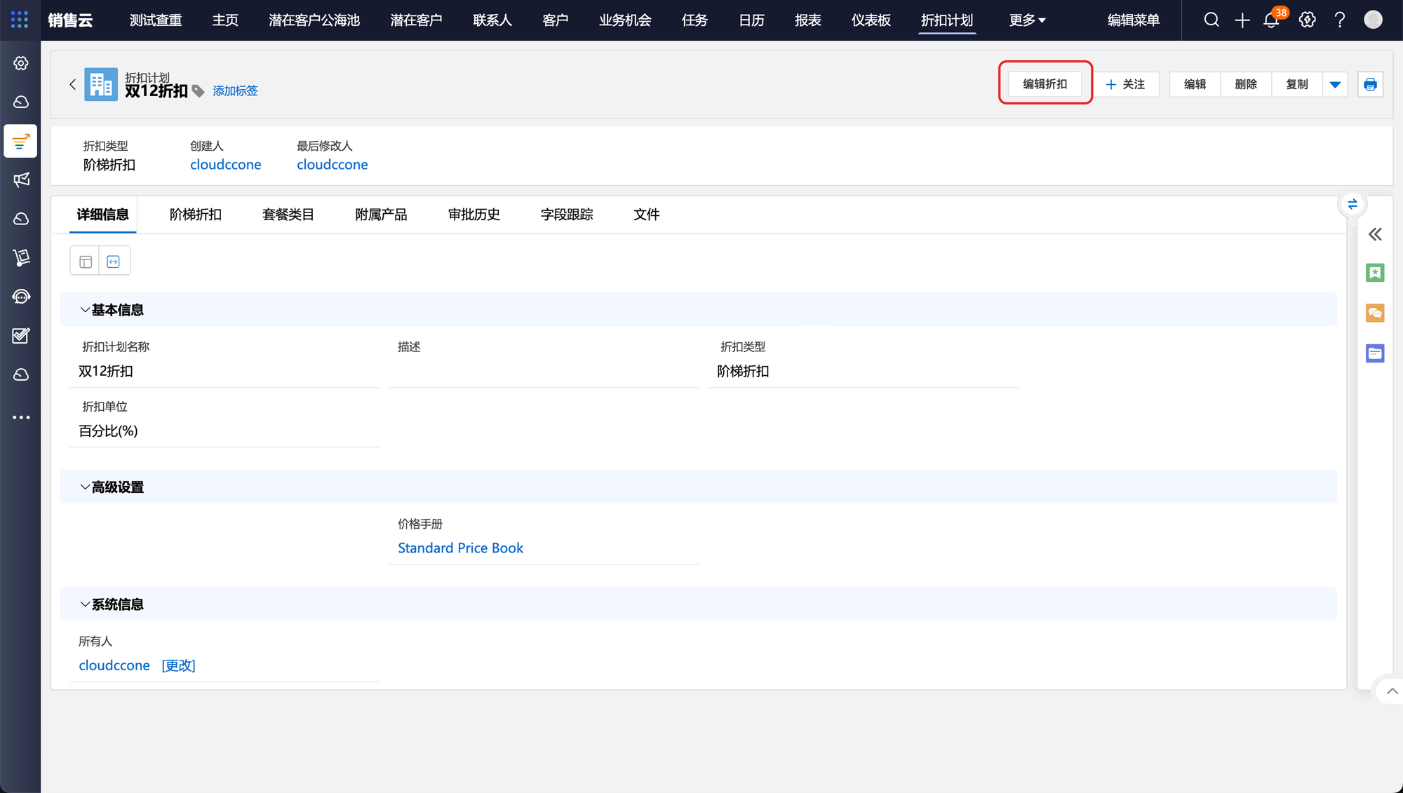 ⑳ 折扣计划:报价行产品关联的折扣计划。