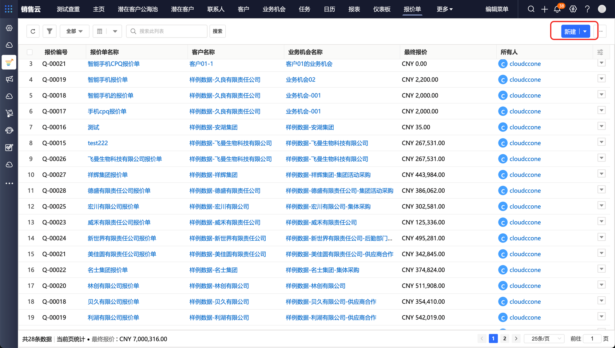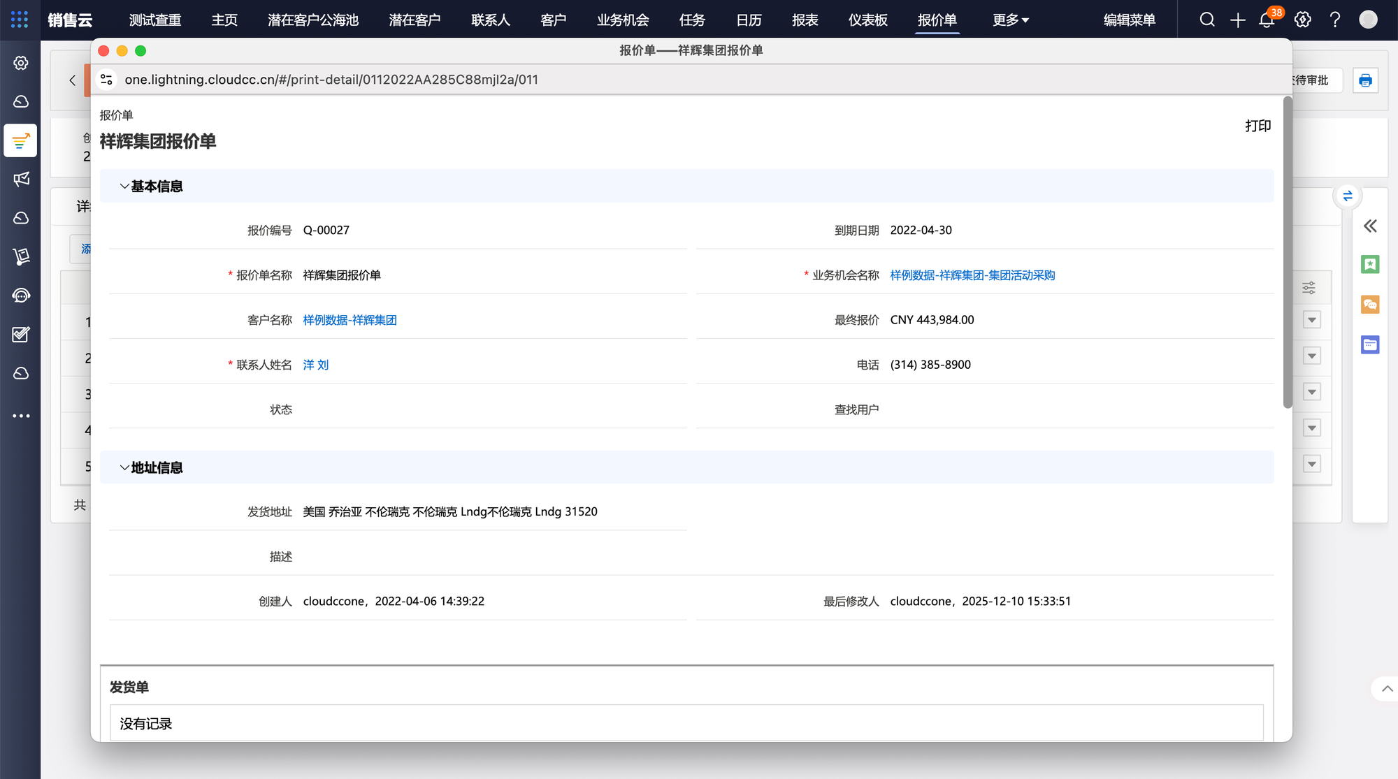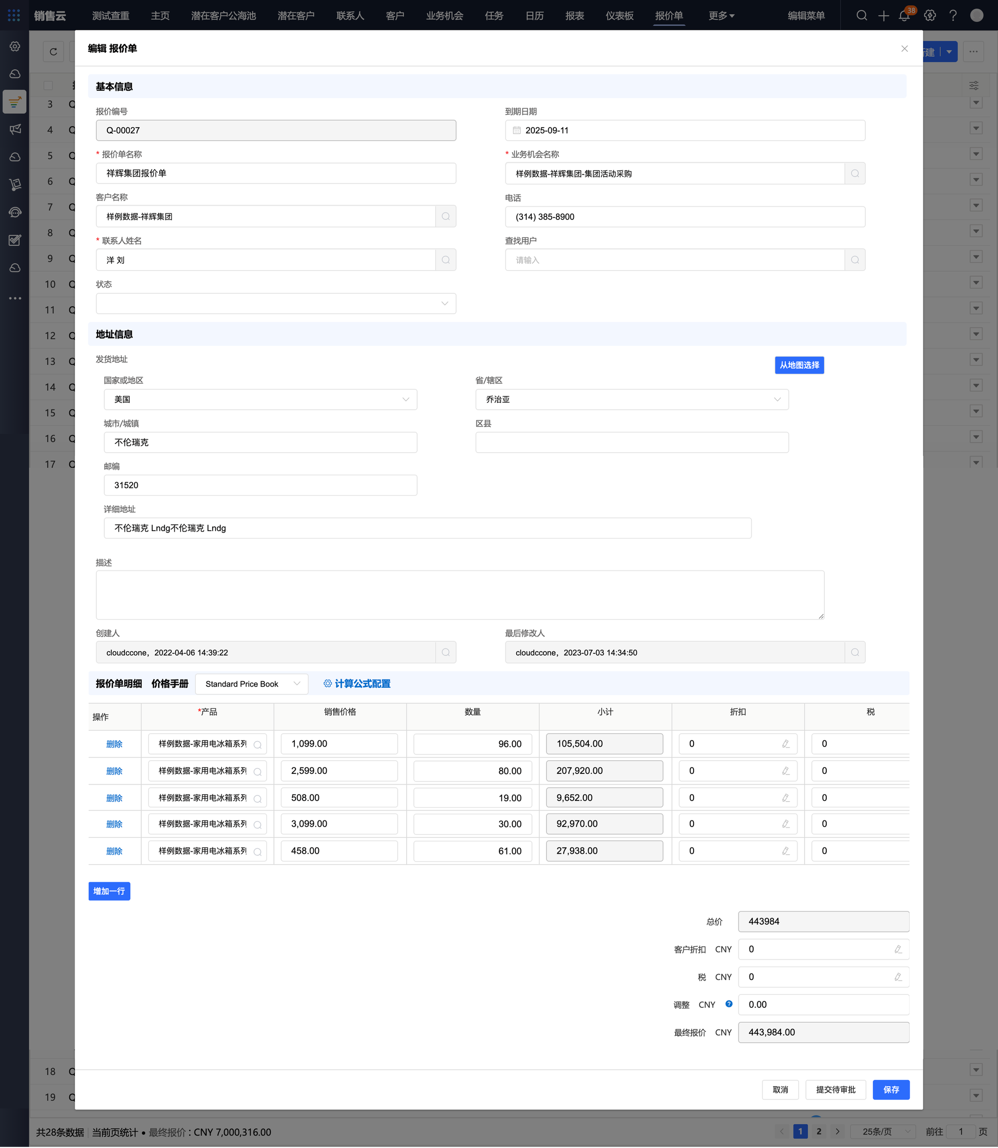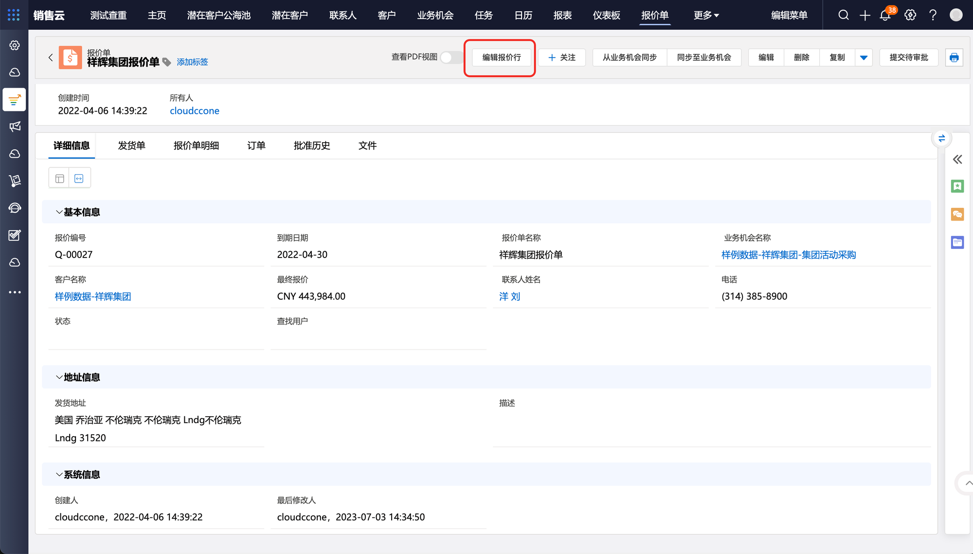 销售编辑好报价单后,如果最终确定了报价单的信息,可以将报价单的产品同步至业务机会。