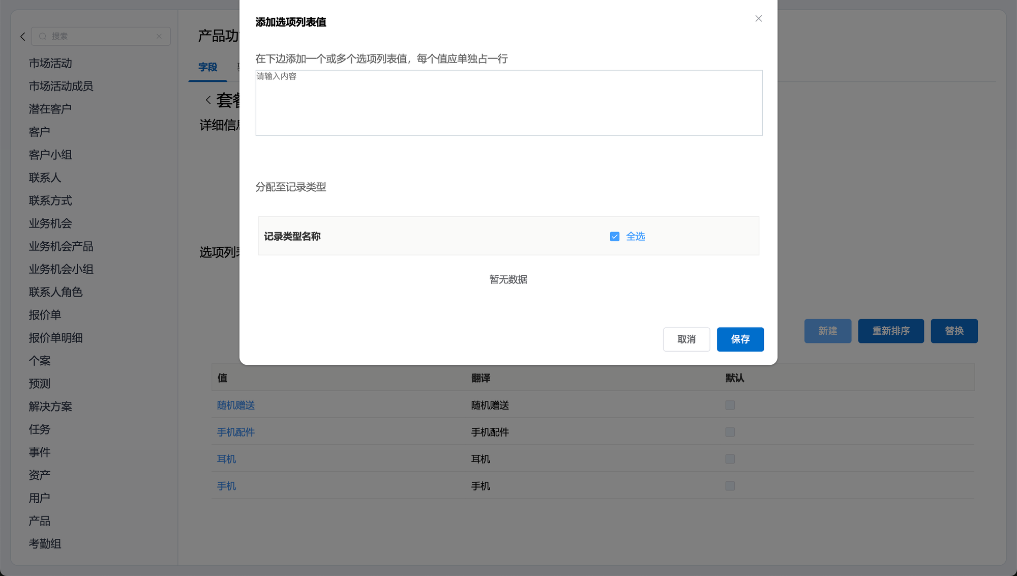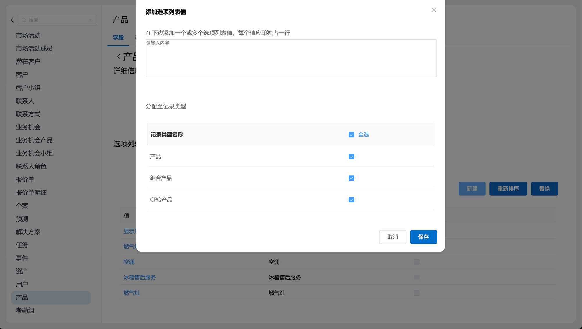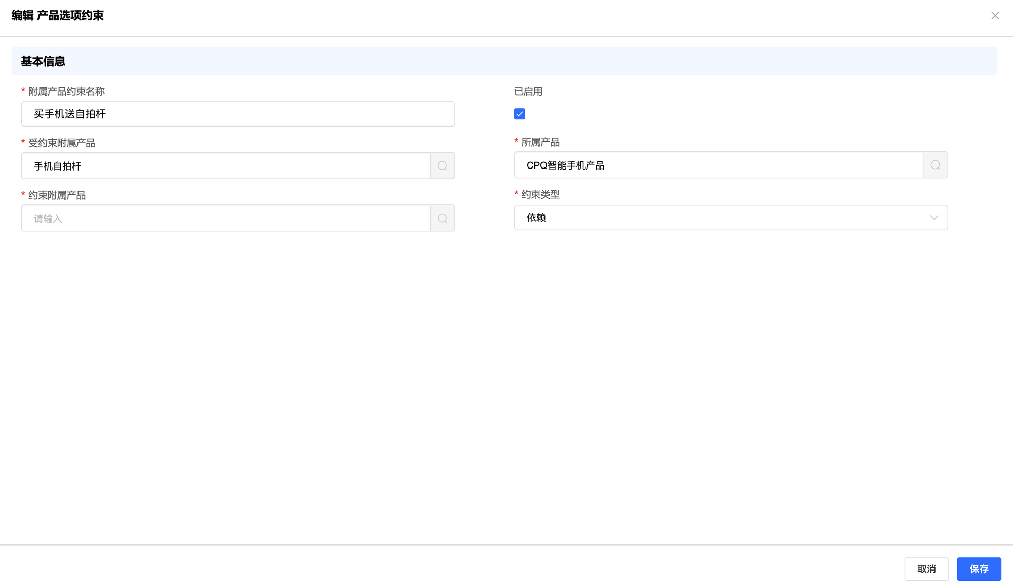 ① 已启用:产品启用后,在报价时,允许销售添加该产品至报价单。若产品未启用,则在报价单选择产品页面自动过滤该产品,销售无法添加该产品至报价单。