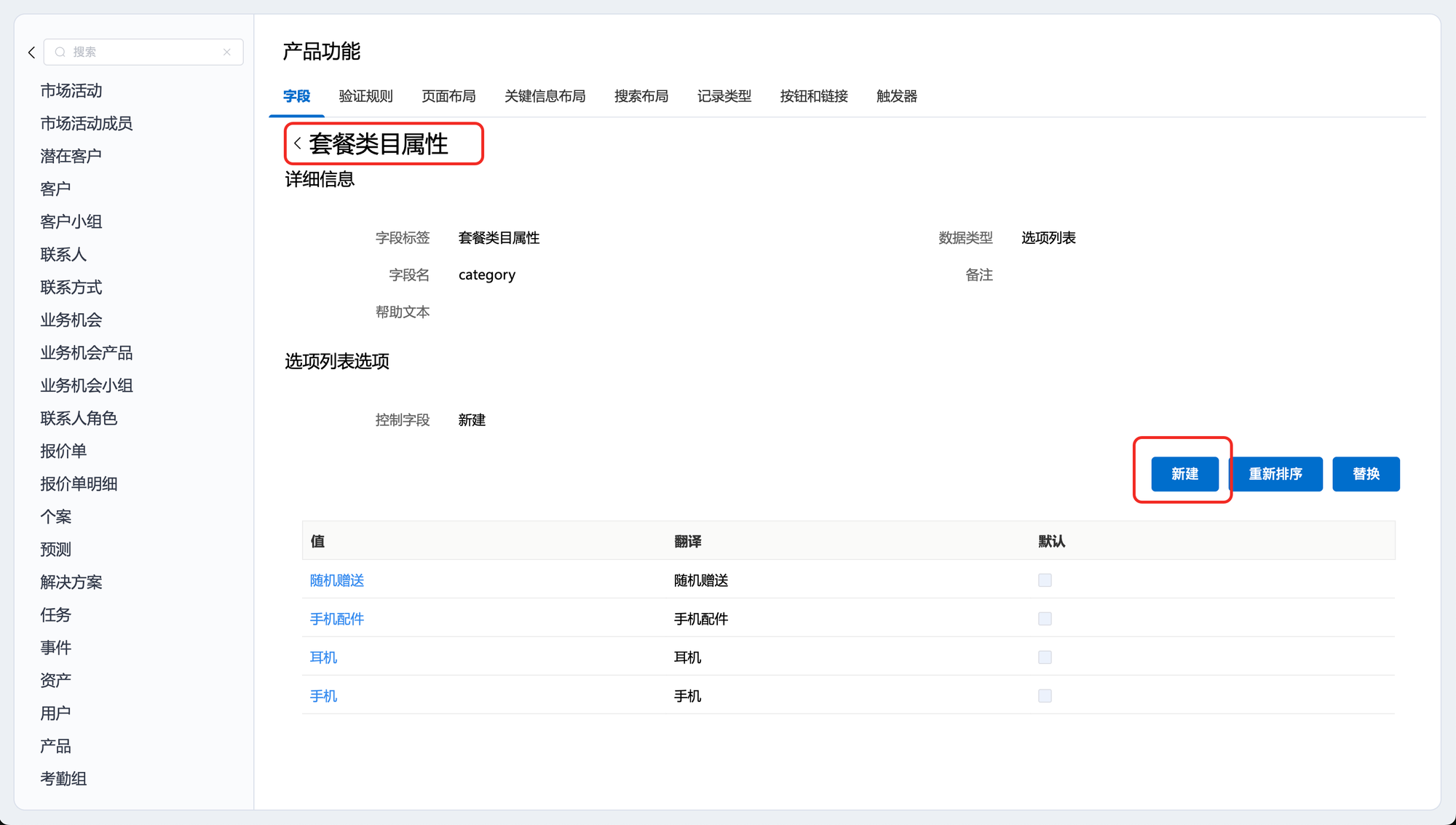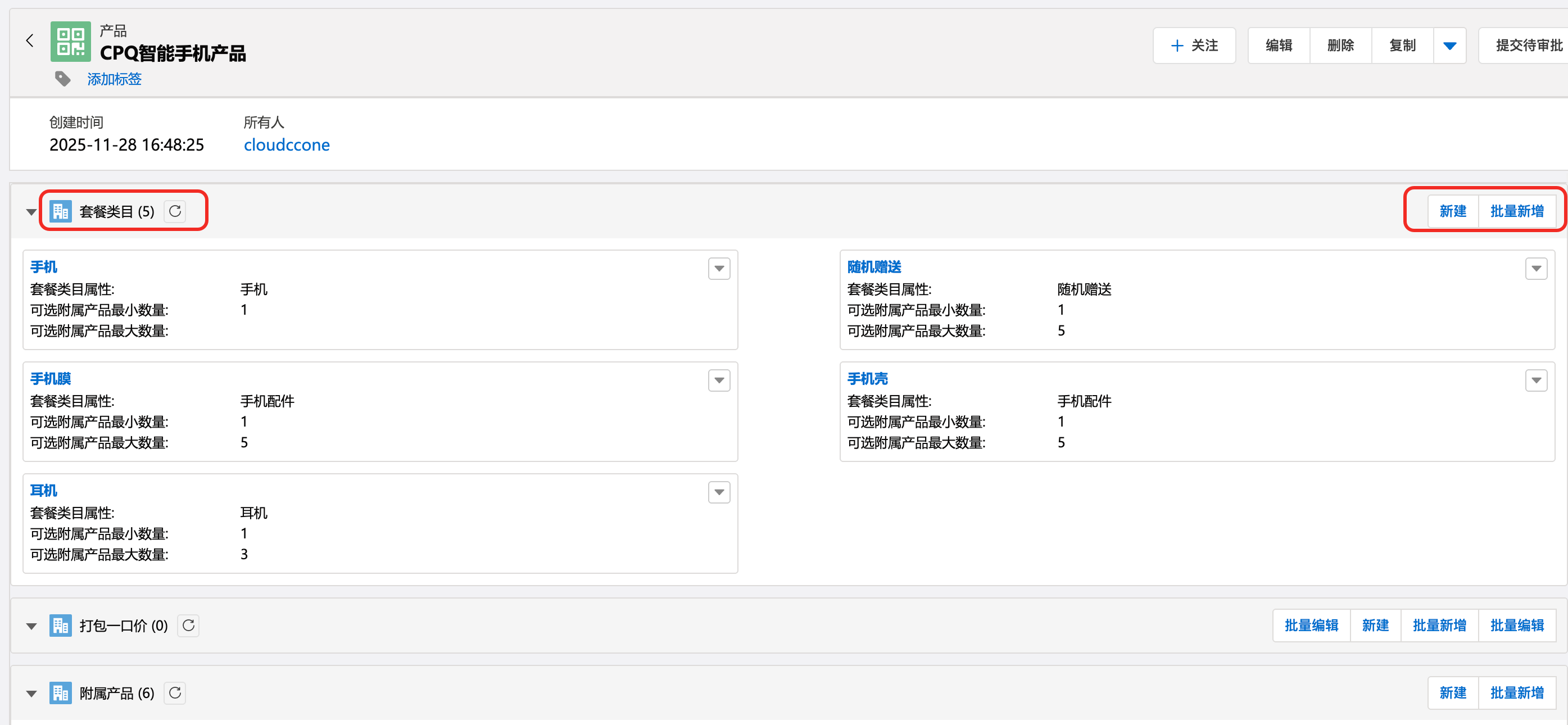 本节涉及的功能包括产品系列和套餐属性类目的创建。