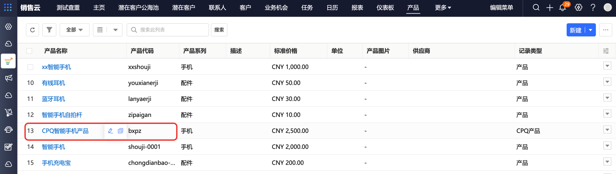 步骤 1:选择 1 个父产品,如手机。在产品列表页,点击单行产品,进入该产品详情页。