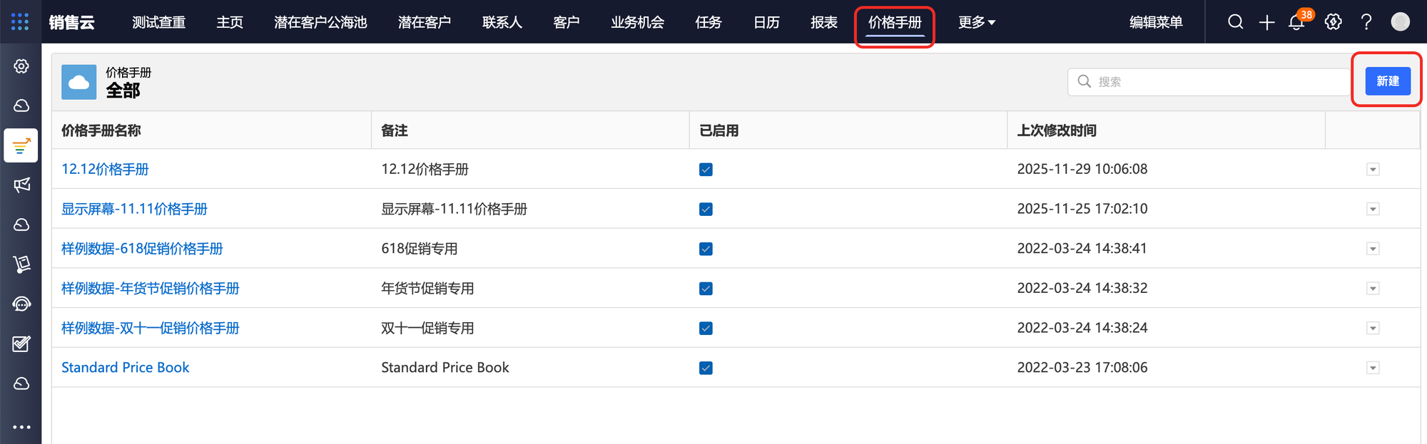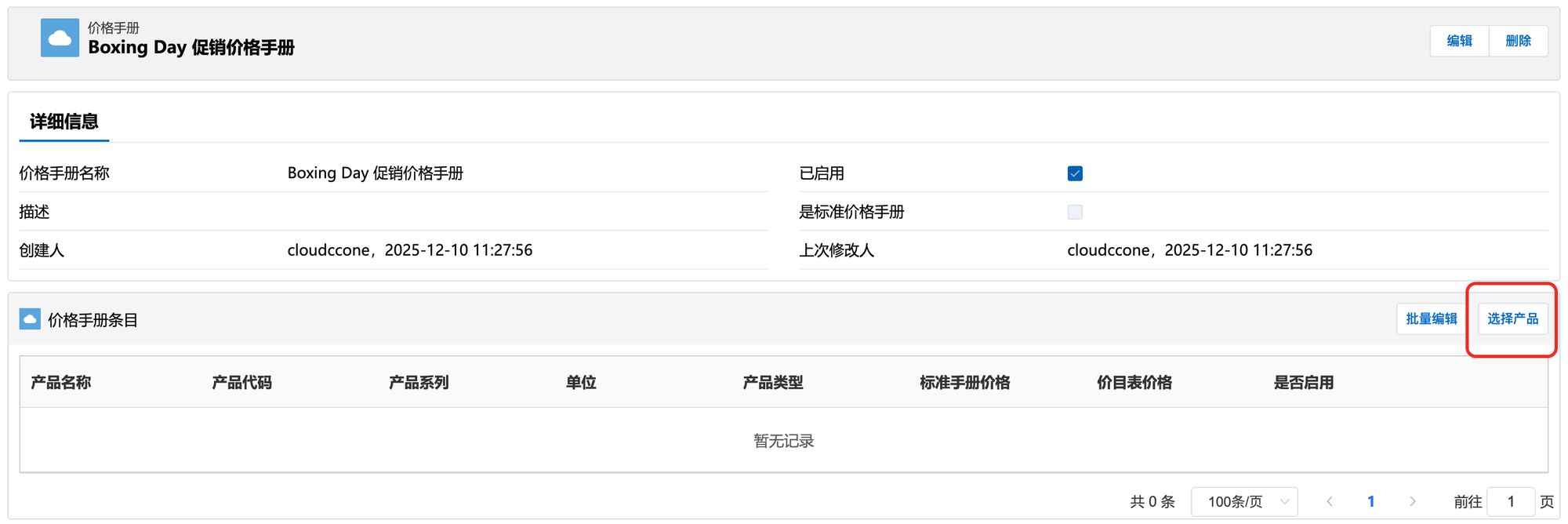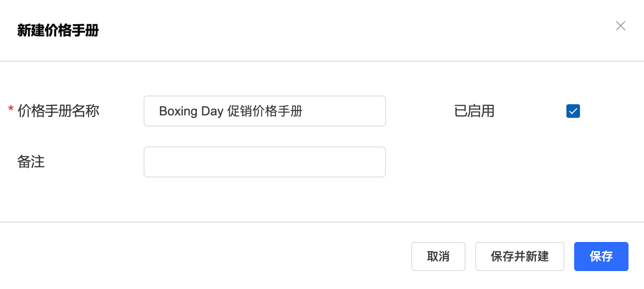 标准价格手册价格:通常,每款产品都会有一个标准定价,我们称之为标准价格手册价格。系统默认会生成 1 个标准价格手册,产品的标准定价,将被保存 到标准价格手册中。