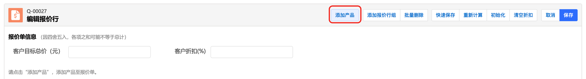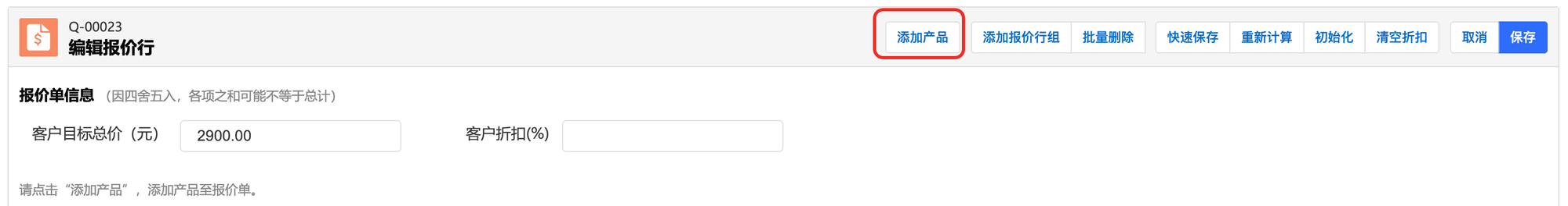 新建完报价单之后,添加需要向客户报价的产品至报价单。