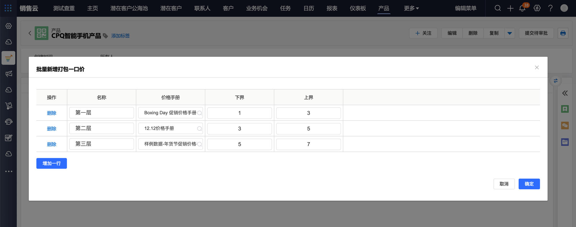 ② 多维度的产品定价:CPQ 支持为销售团队提供实时准确的产品定价数据,同时支持产品价目表定价、打包一口价、分层定价、附属产品单独定价等多种灵活的定价方式,满足企业多种产品定价策略。
