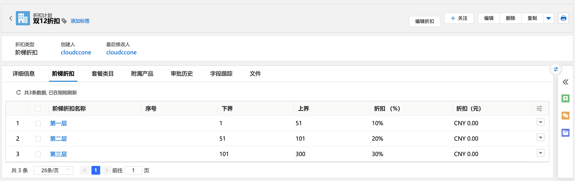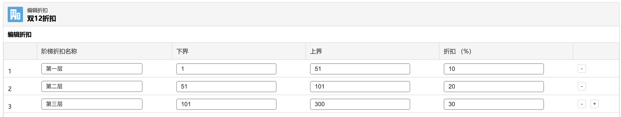 ㉑ 阶梯折扣:和报价行产品数量对应的折扣层。