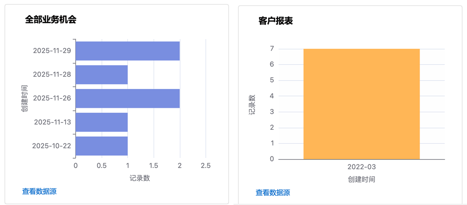 • 最近查看组件:展示最近查看的 10 条对象记录。