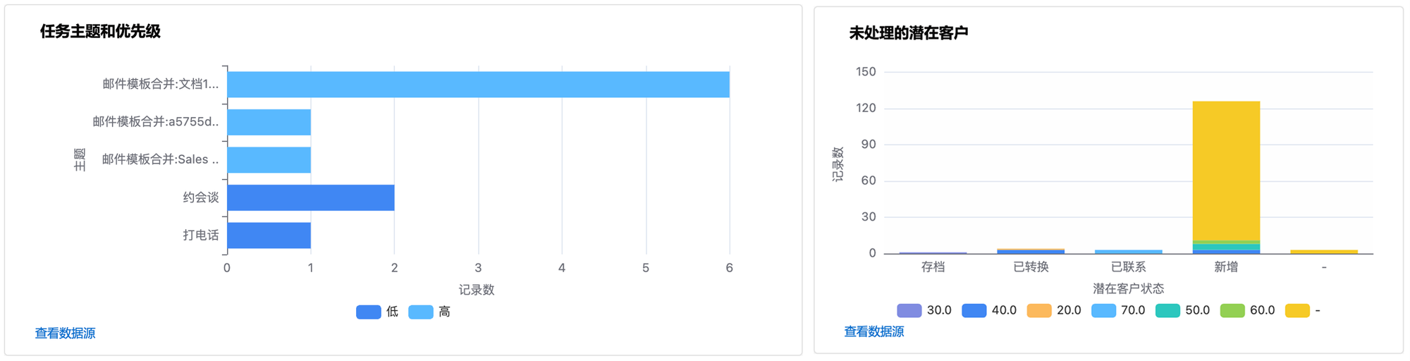 2.仪表板图表的数据源除了原有的报表外,扩展了列表视图数据源: