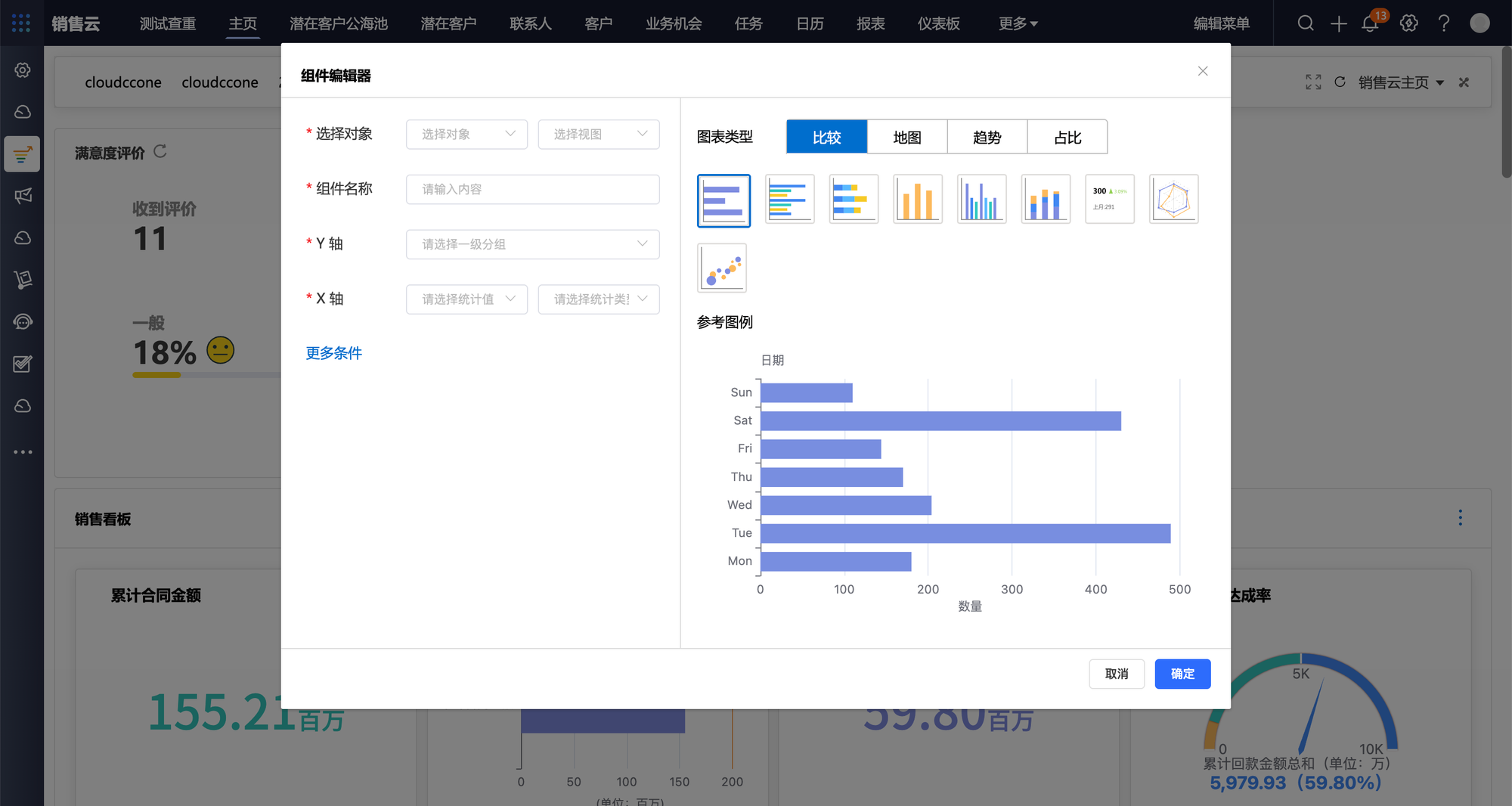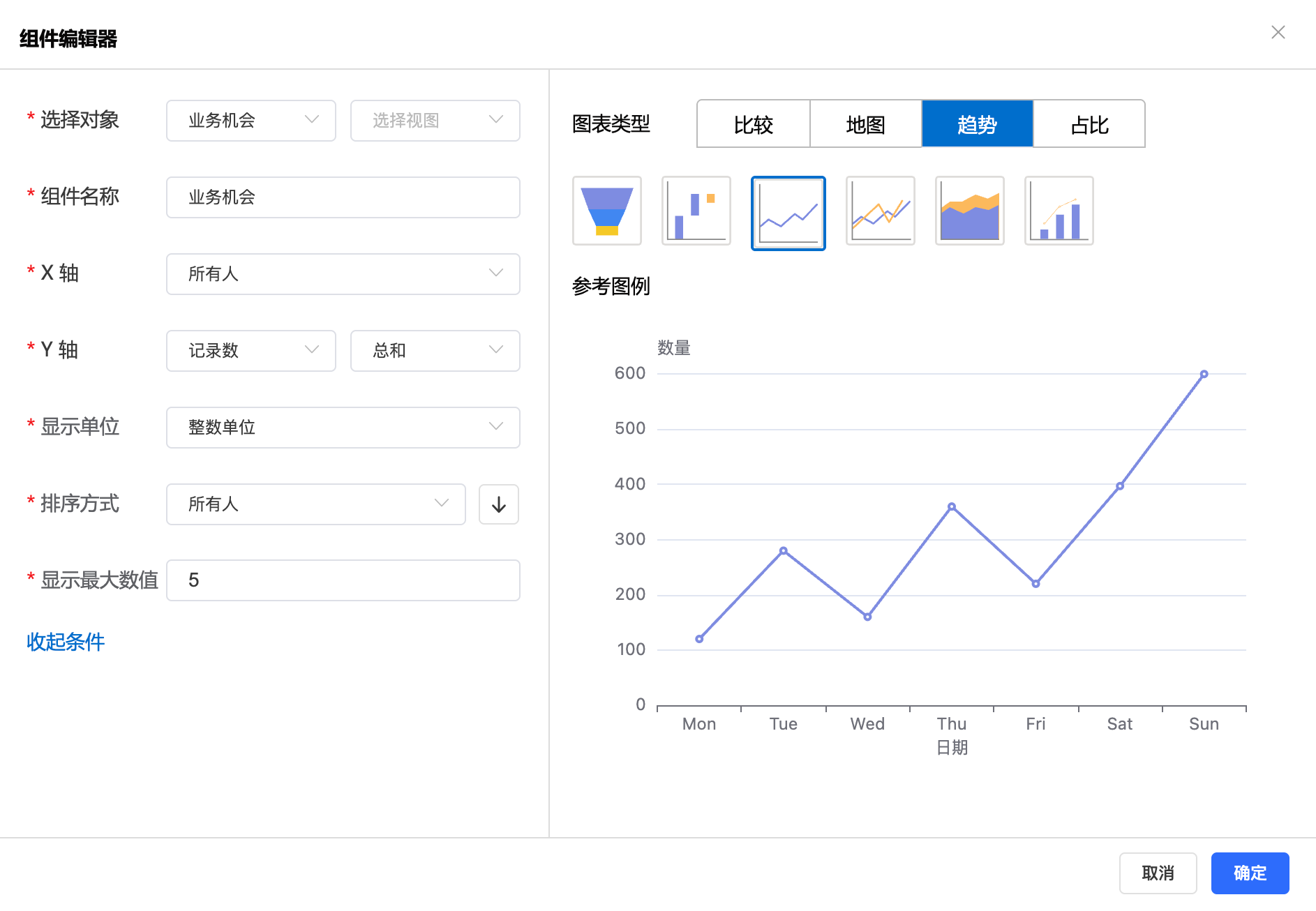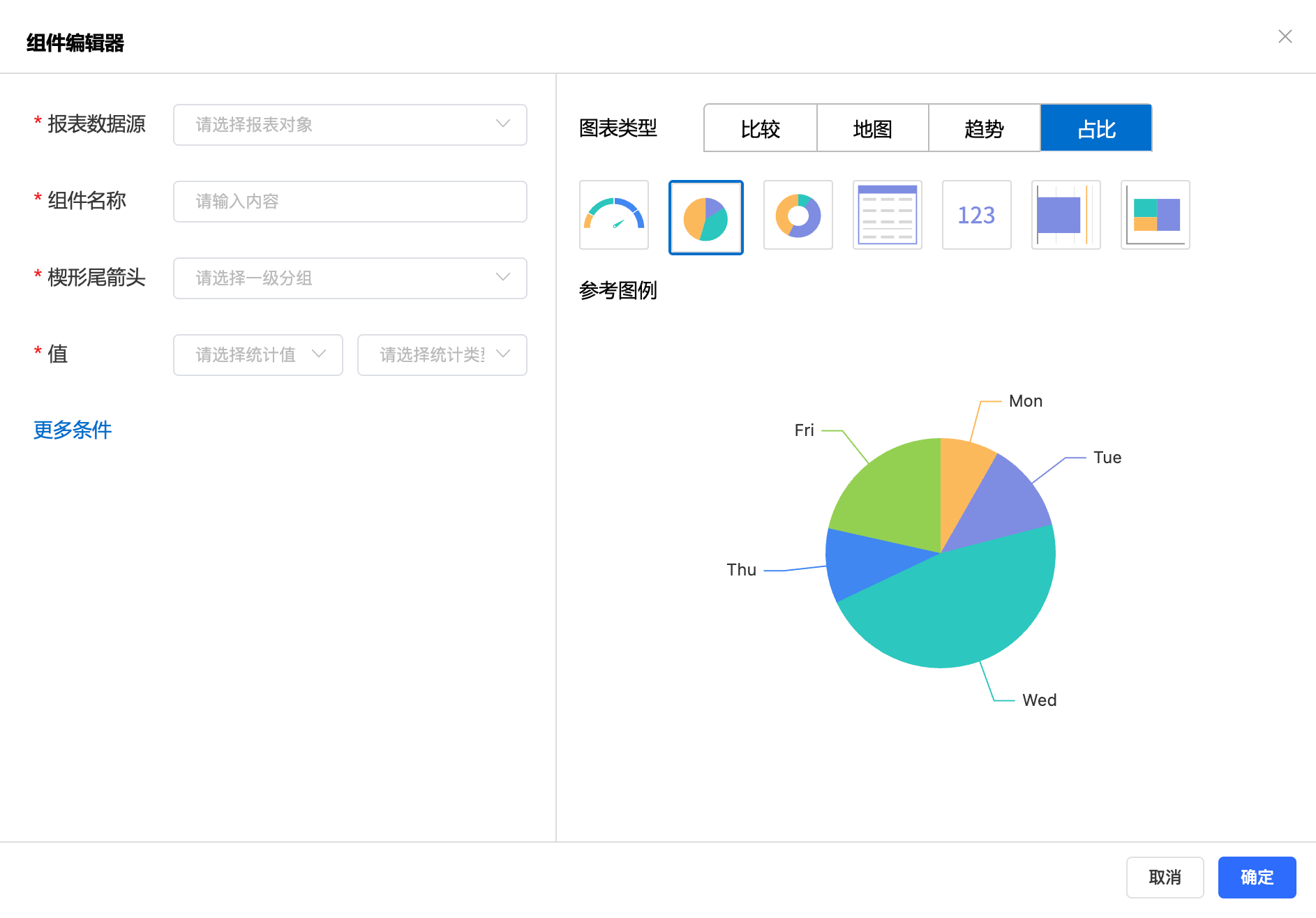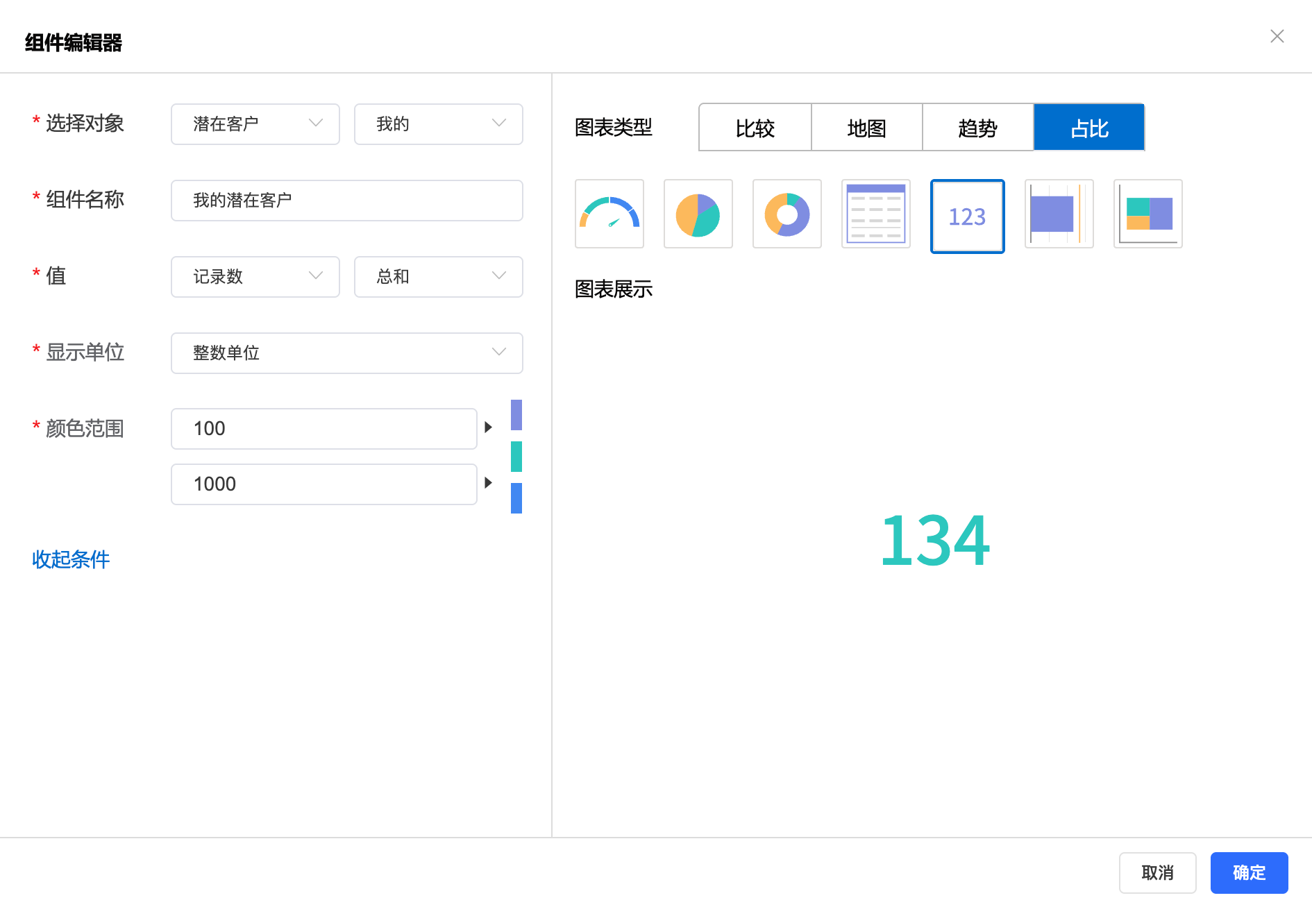 | 数据源 | 报表:选择具体的报表 列表视图:选择具体的对象后选择该对象下具体的视图 |