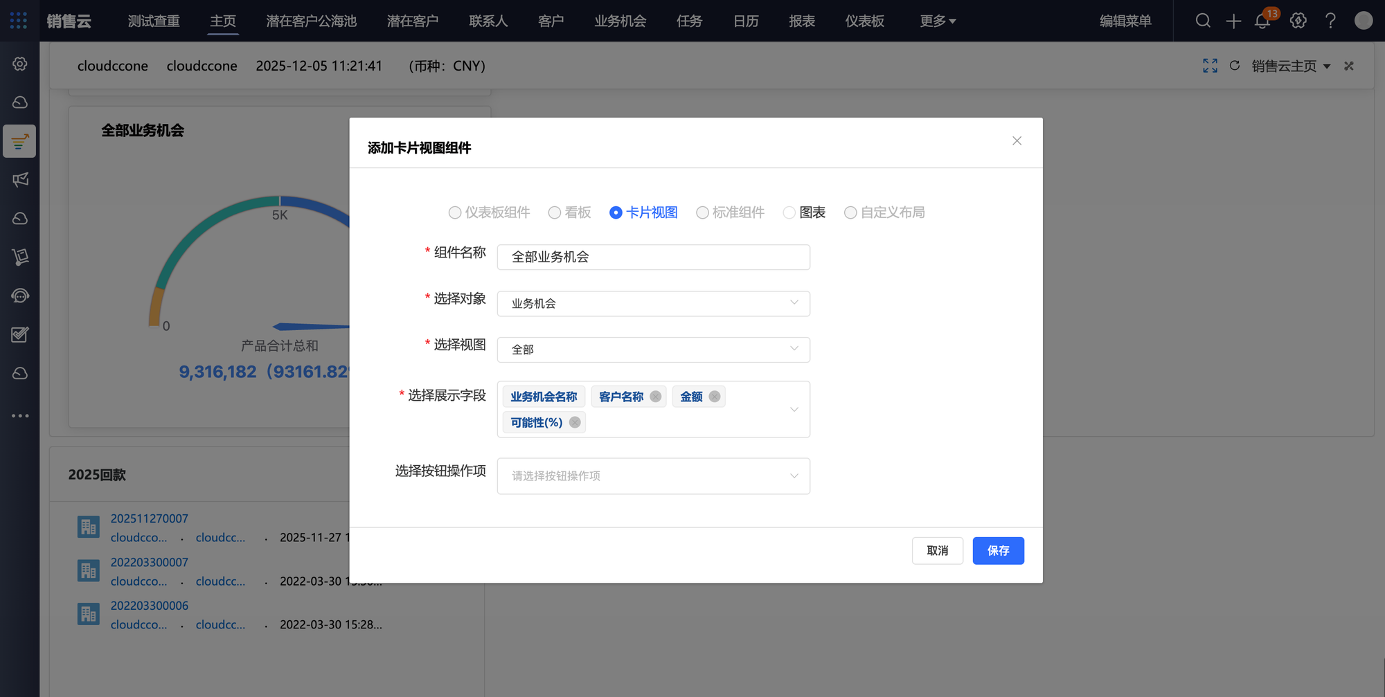 第三种组件叫做“卡片视图”,可以选取某个列表视图的前 5 条数据展示在 一张卡片上,还可以在卡片上直接对数据进行操作。