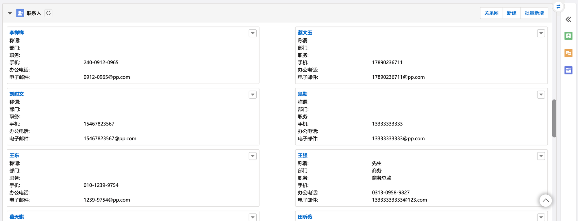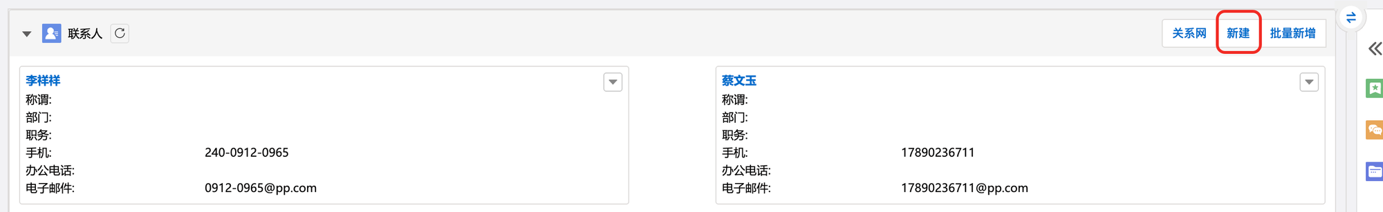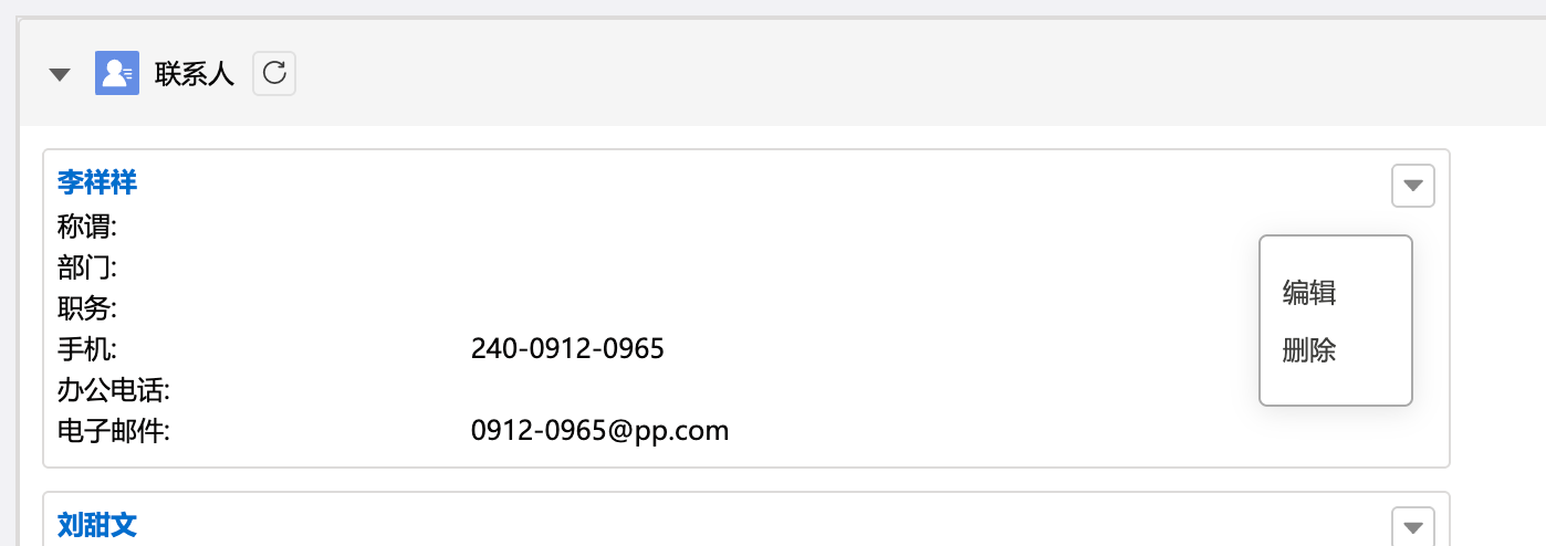 (2)使用下面的卡片式相关列表,查看和管理相关记录。