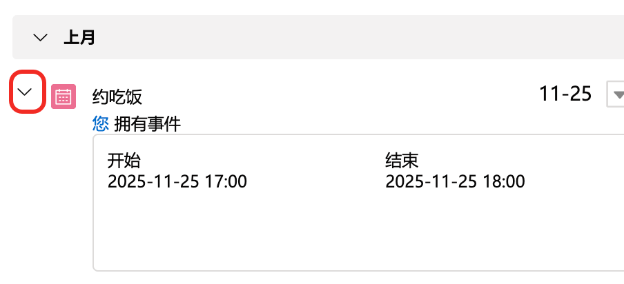 点击事件或任务前方的小三角,展开查看内容。或是点击对应名称,跳转至 对应详情页进行查看。