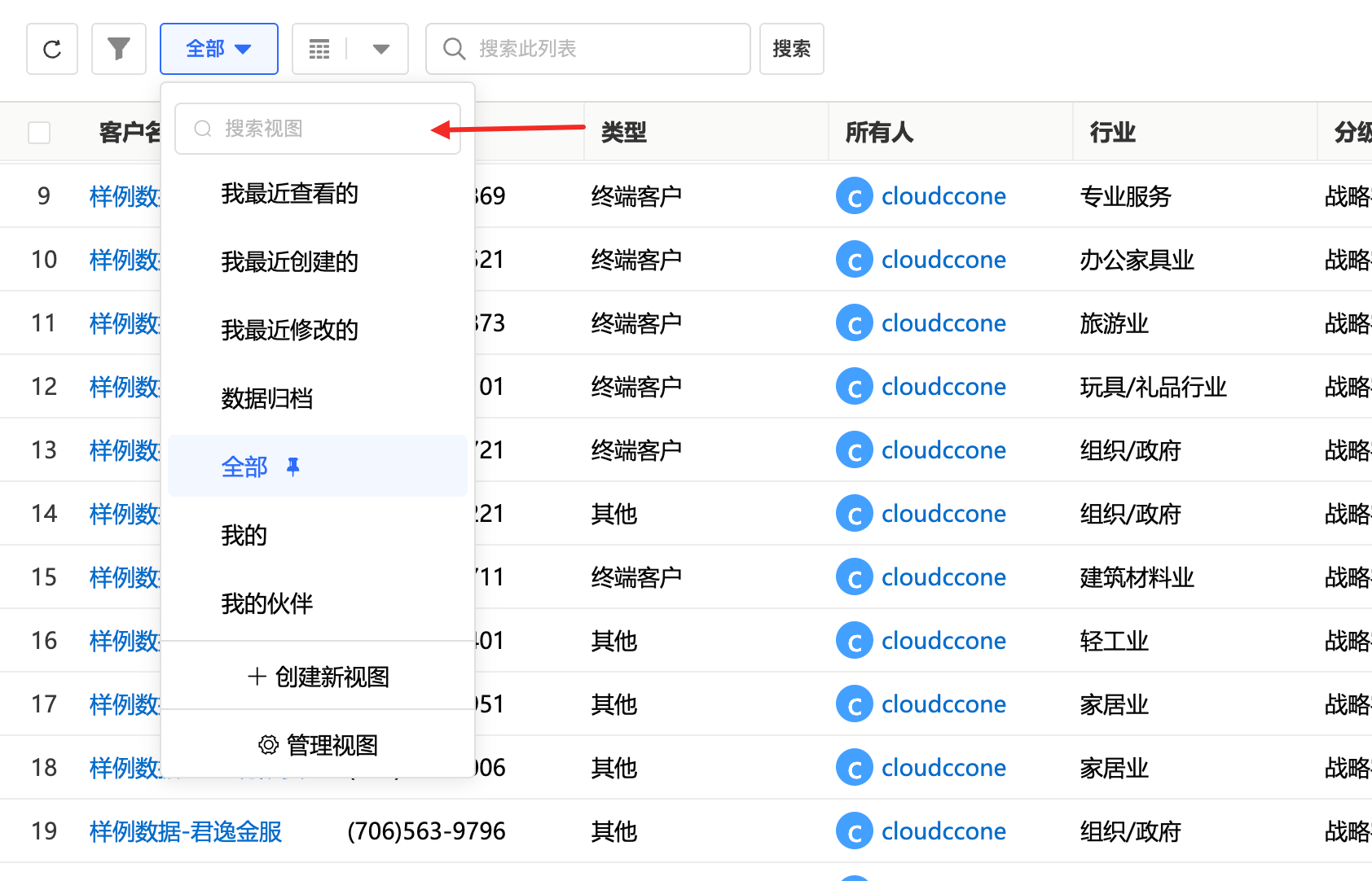 点击下拉菜单,可以看到你拥有的所有视图。视图太多怎么办?试试搜索视图吧!
