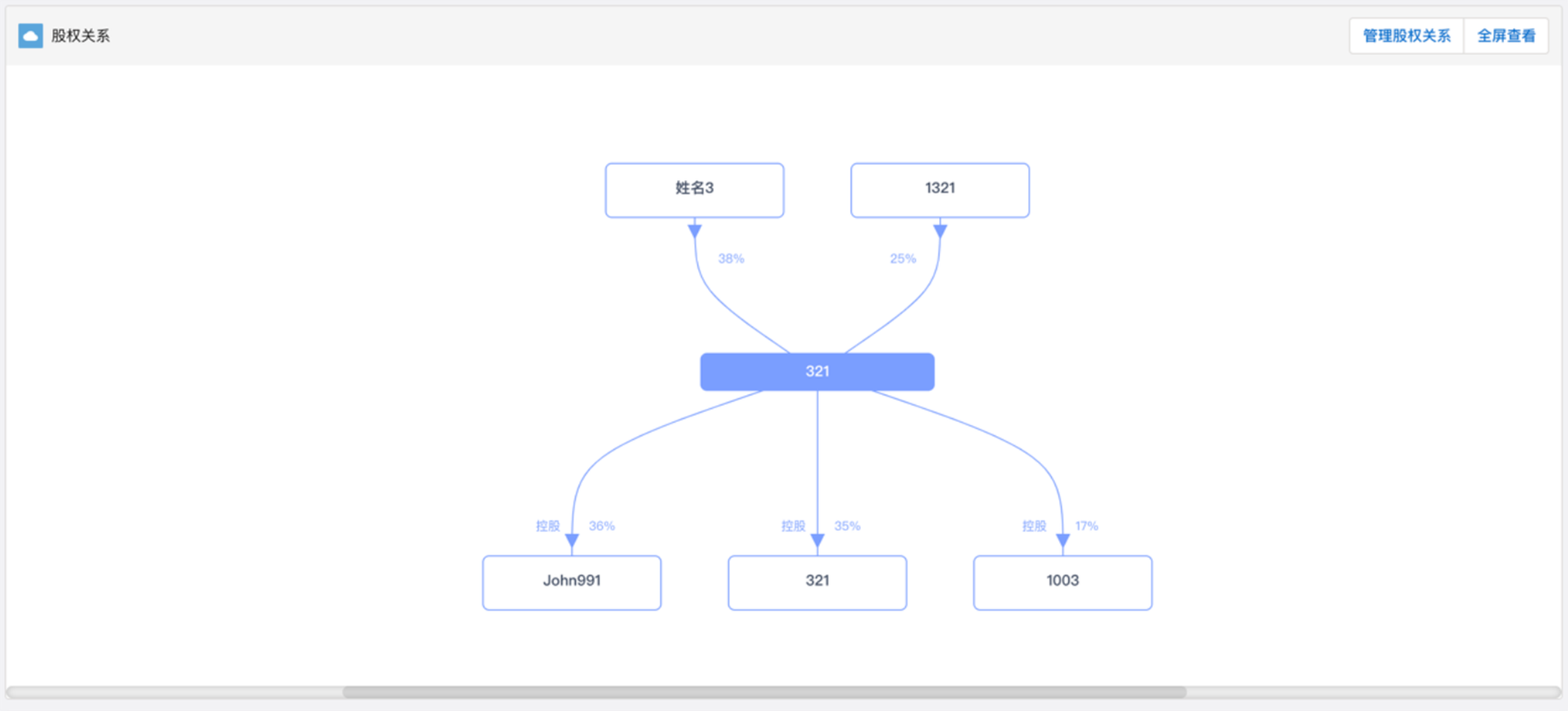 股权架构图帮助用户在脑海中清晰地了解客户的子母公司与股权架构,并将信息使用树状展示,方便查看各公司的详细信息。在客户的详细信息中,你可以在相关列表中找到“股权关系”相关列表。 点击母公司或子公司的名称,可 以跳转至对应详情页查看信息。