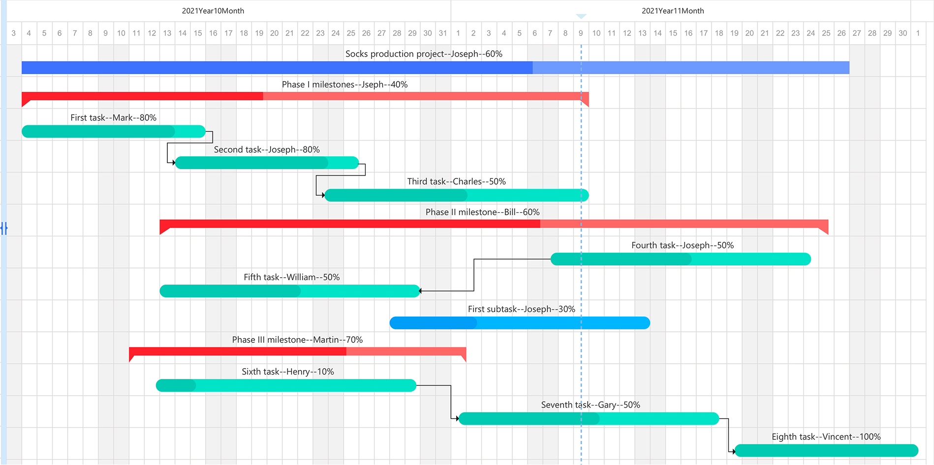 立项之初,拆解出项目周期、项目目标以及非常重要的项目预算工时及成本。项目经理基于这些数据,创建项目的里程碑,并创建项目任务派遣给项目成员。派遣产生的计划工时不能超出项目预算工时。