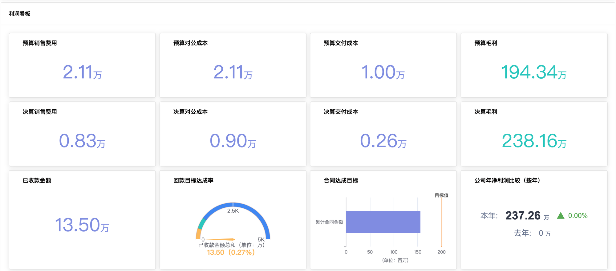 作为管理者,除了实时跟进某一个项目的损益情况,更重要的是通过数据分析的方式进行洞察。有了项目损益,我们可以来做各种维度的报表或仪表板,比如,能能动态查看公司整体损益情况,能根据销售人员或部门进行损益排名,能根据对不同的在途项目进行损益排名,等等。