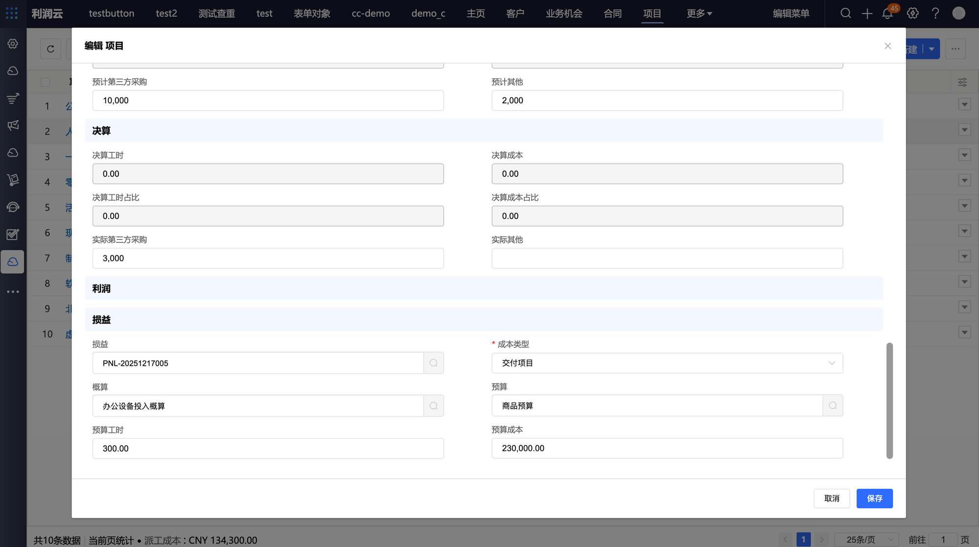 损益拆分成多个商机立项,录入多条概算信息,审批通过的概算费用及成本都可以汇总到一条损益上。