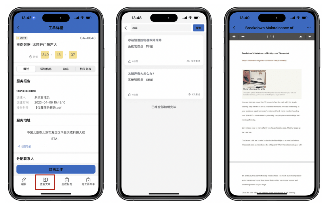 步骤2:现场服务人员可通过知识文章辅助服务。
