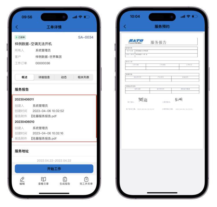 步骤5:点击“生成服务报告”按钮。服务报告即生成。