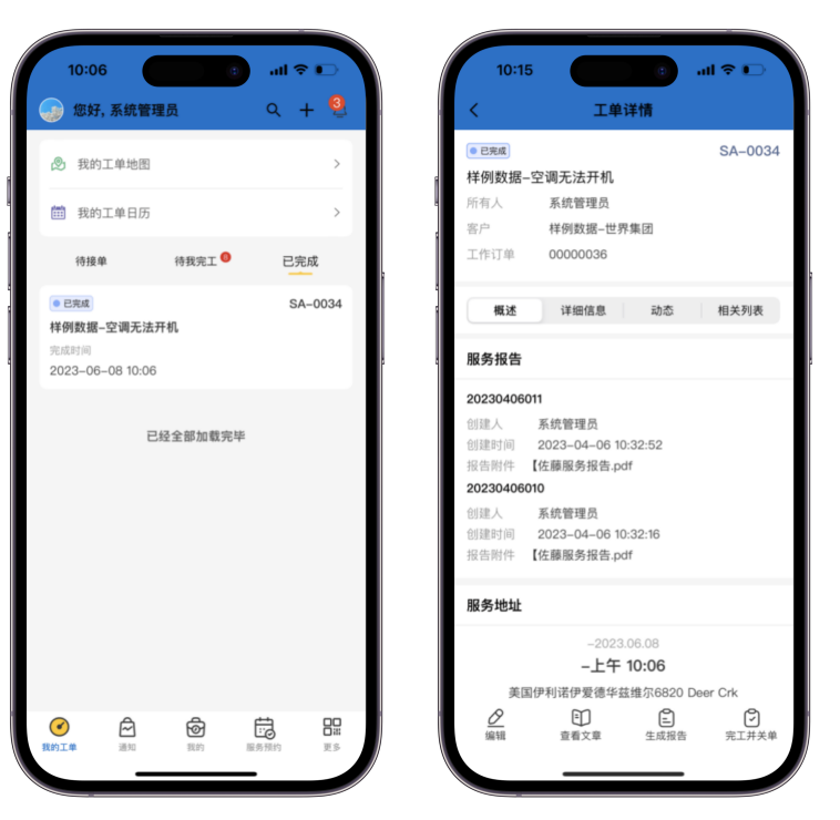 步骤1:登录APP,我的工单>工单详情页,点击“生成报告”按钮。