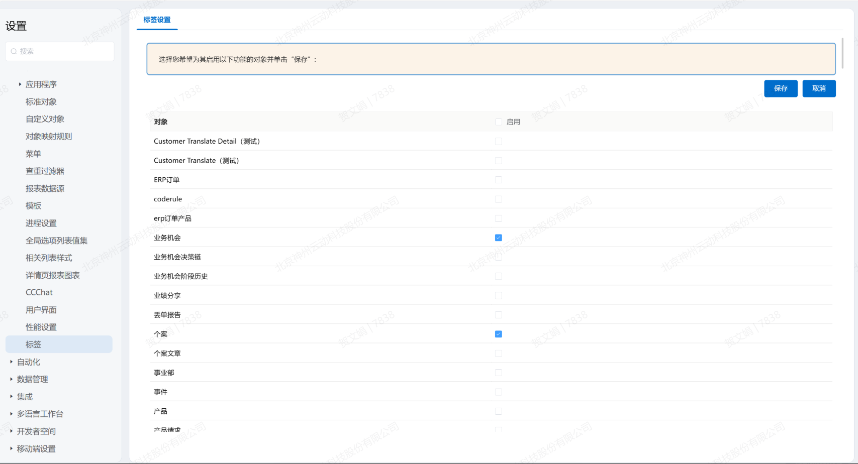 在当前页面可以基于不同对象需要,控制前台页面标签功能的启用。
