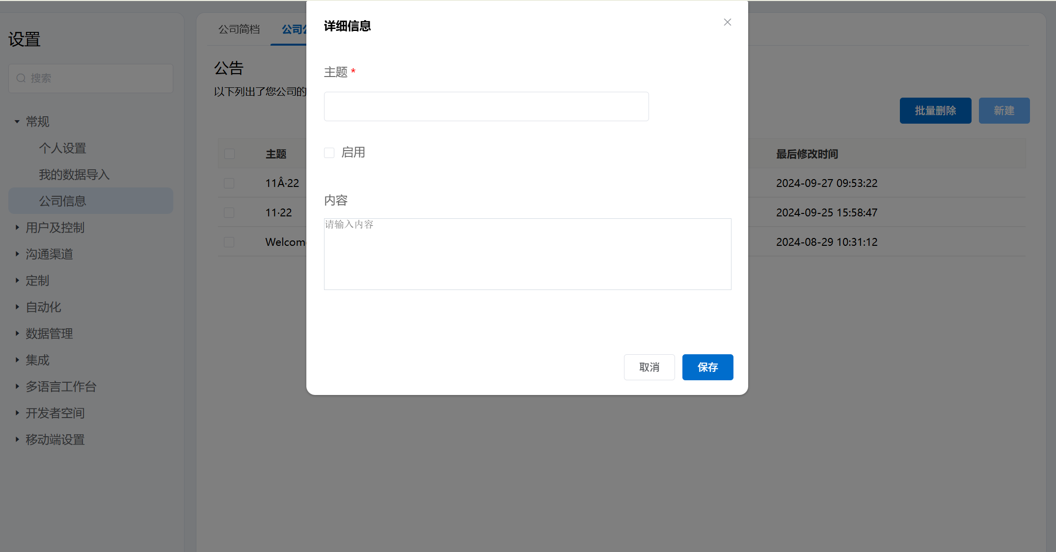 - 点击保存后,则当前公告推送至全公司用户