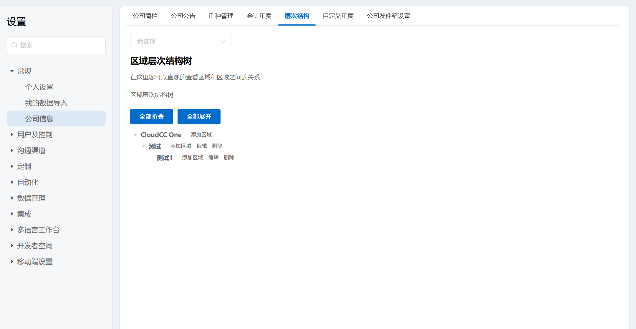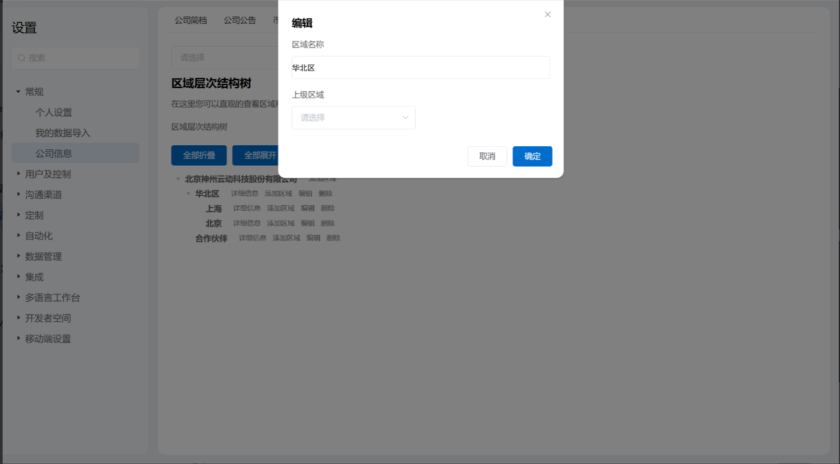 - 新增/ 编辑 /删除区域,通过简单操作可以快速调整整体层次结构树。