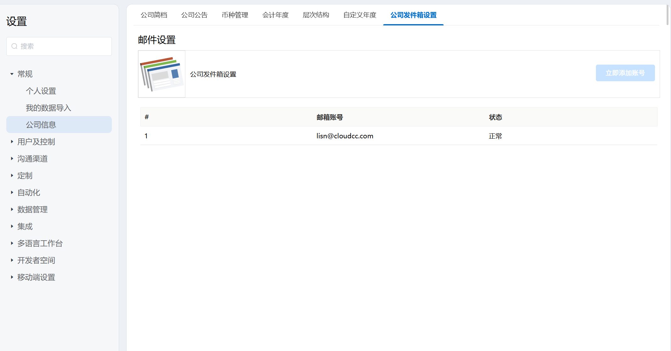 为企业设定公司发件箱,实现企业内部邮件通知。