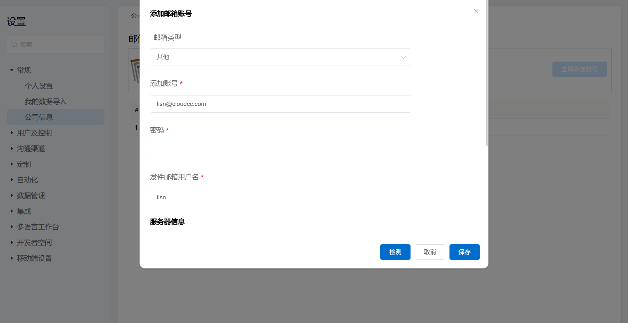 - 通过简单的编辑操作,可以直接新增公司邮箱账号,或者修改账号信息。