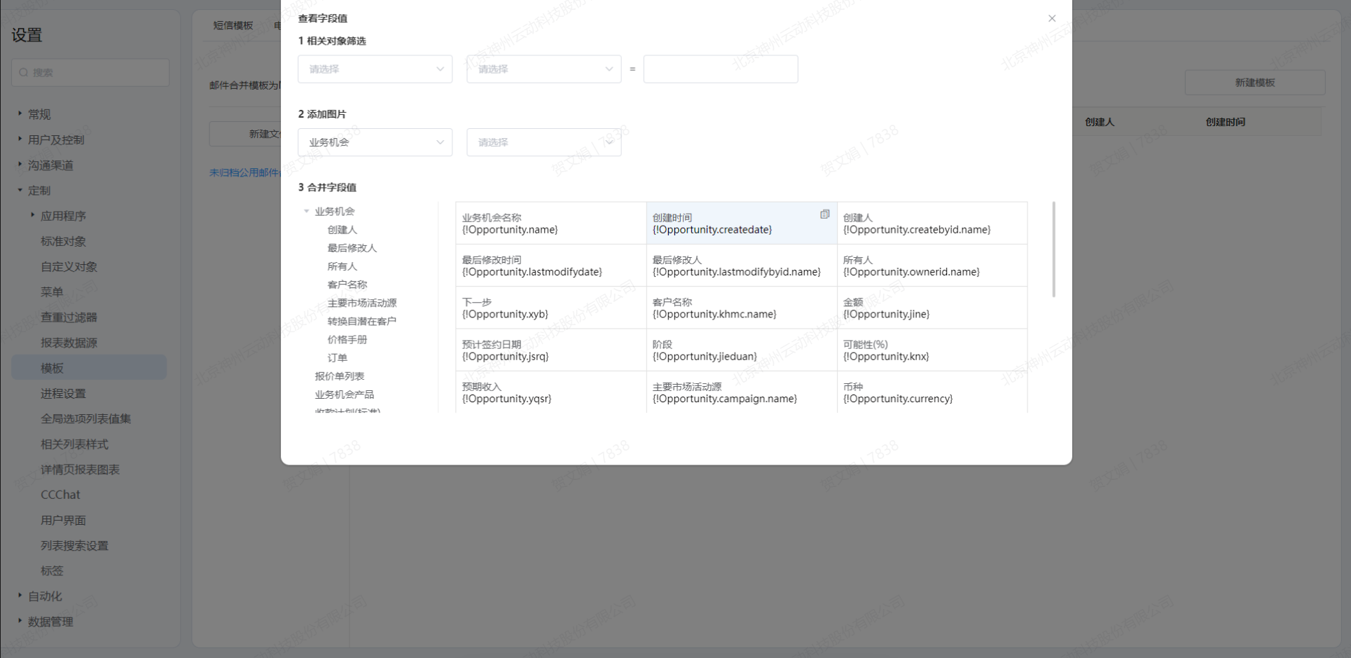 ■ 查看字段值,弹窗展⽰当前已选择对象的字段值及其相关列表字段的字段值