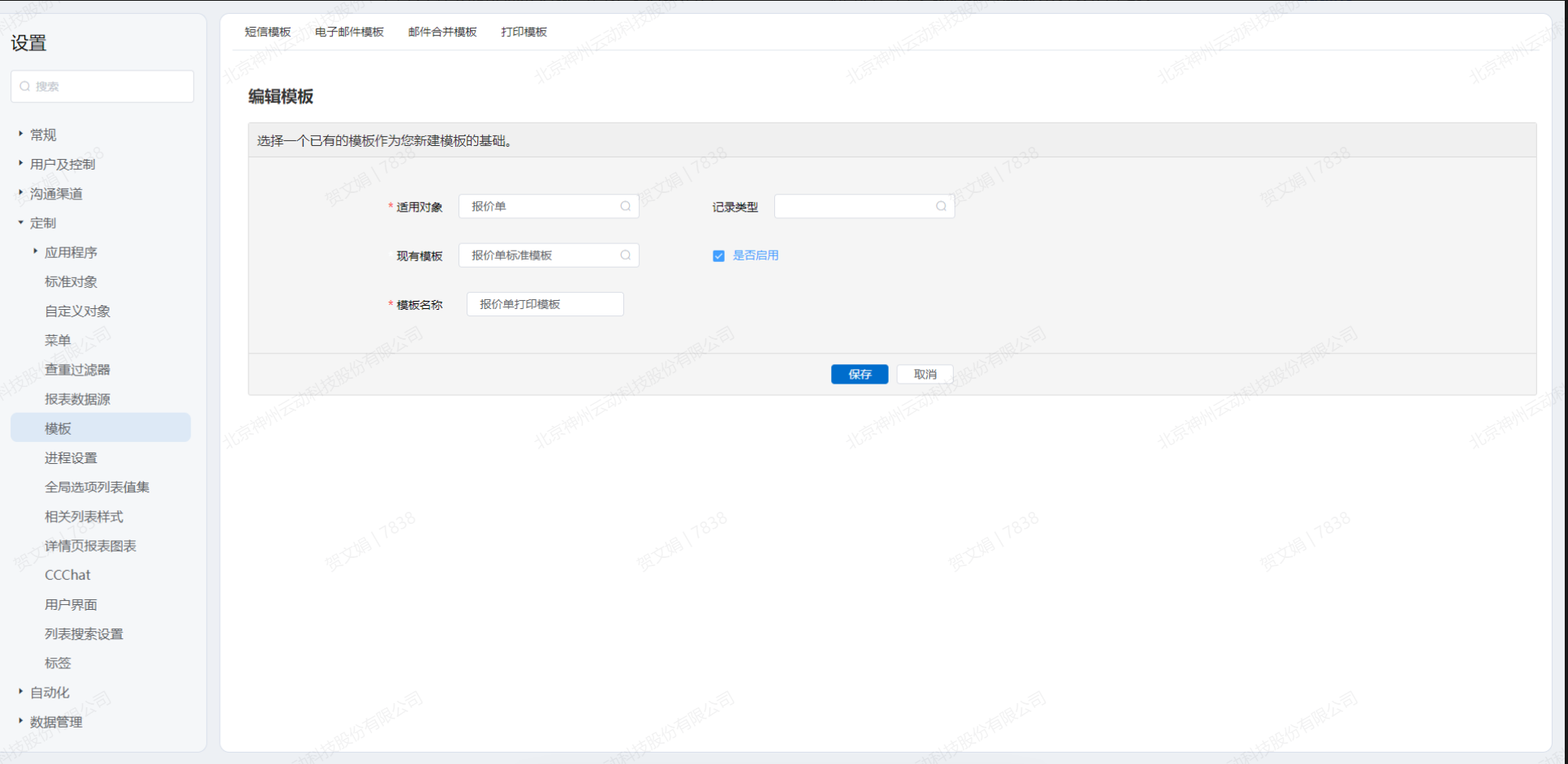 平台为组织提供标准对象与自定义对象的打印模板,经过配置后,可实现对象打印显示必要的字段。