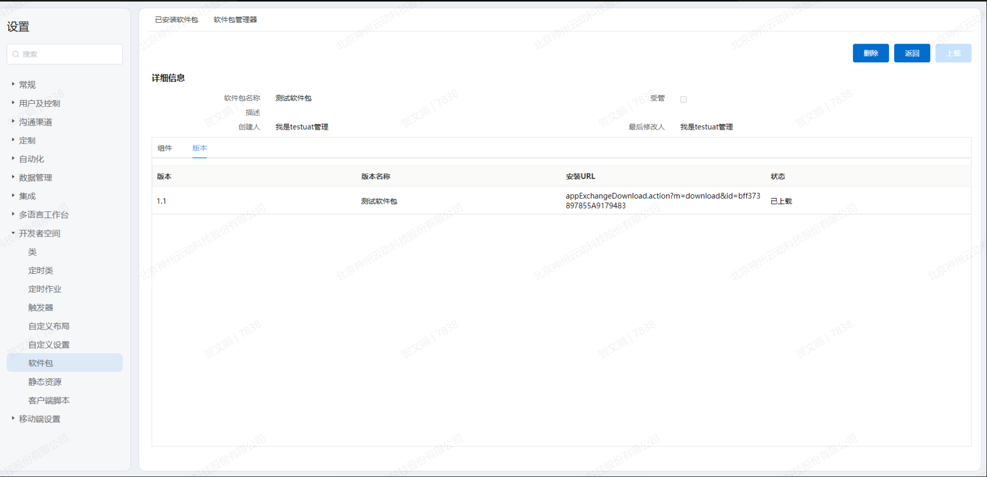 上载完成后,在软件包详细信息的版本标签中查看软件包的版本信息