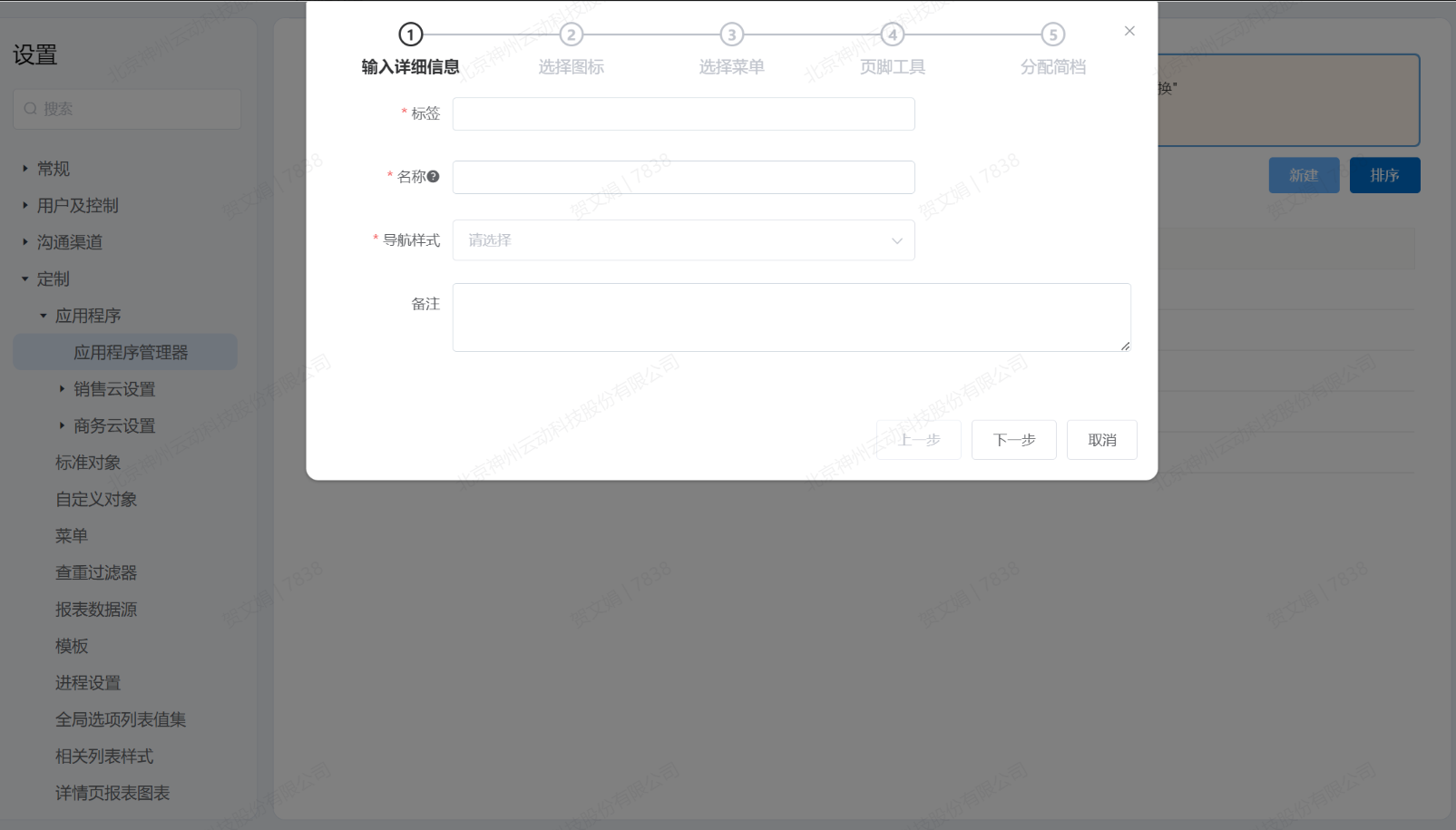 - 进入创建应用程序第一步,“输入详细信息”,在页面输入应用程序标签、名称(名称必须以字母开头,只能包含大小写字母,数字,下划线,最大长度50,最小2位,且不能是数据库的关键字),选择导航样式,导航样式包括标准样式和控制台样式,控制台样式是前台按照二级菜单的样式展示。