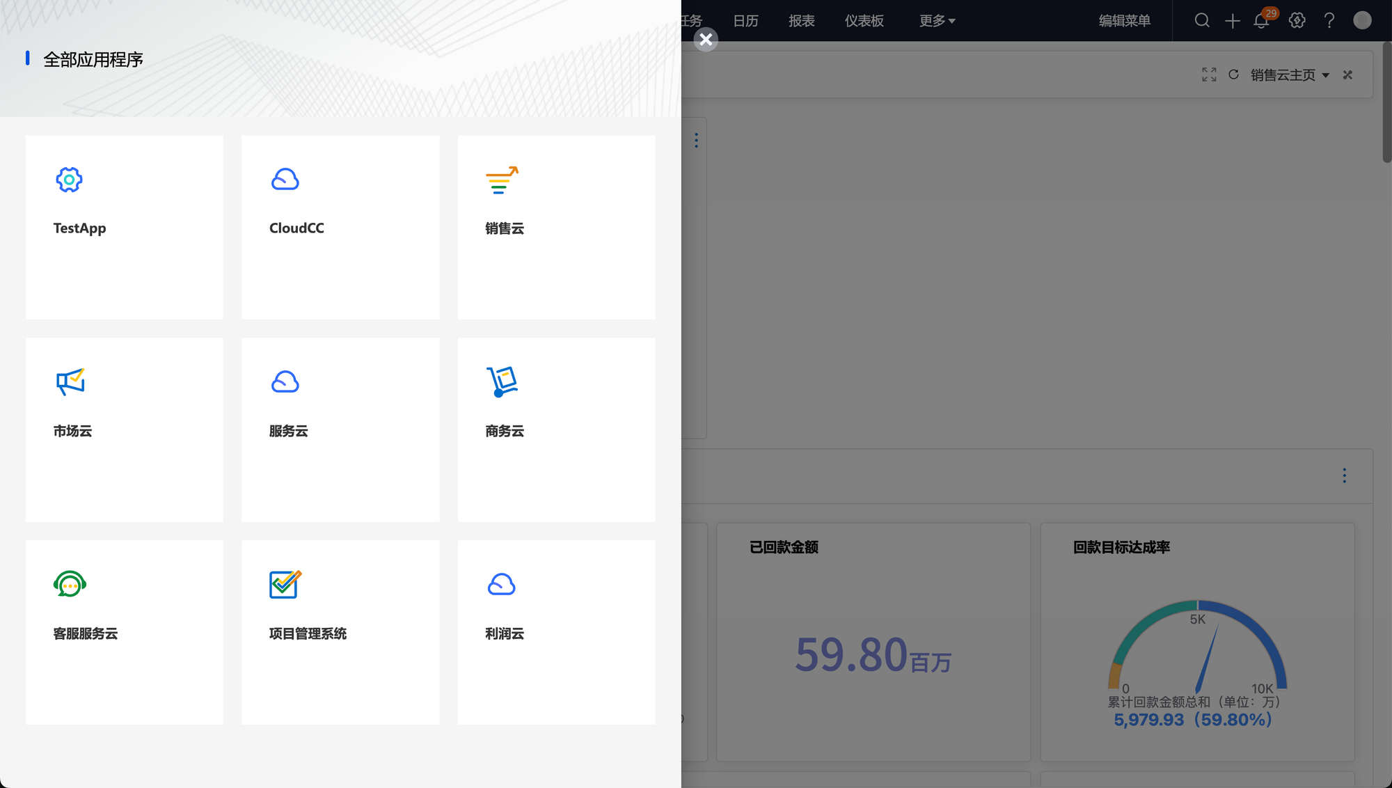 应用程序"是指作为一个单位提供功能的一组菜单。您可以自定义现有应用程序以匹配您的工作方式,或通过对标准和自定义菜单分组构建新应用程序。您可从应用程序管理器中查看组织中的所有应用程序,也可以将多个用户简档分配到多个应用程序。