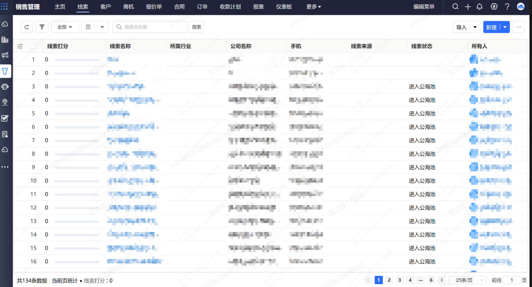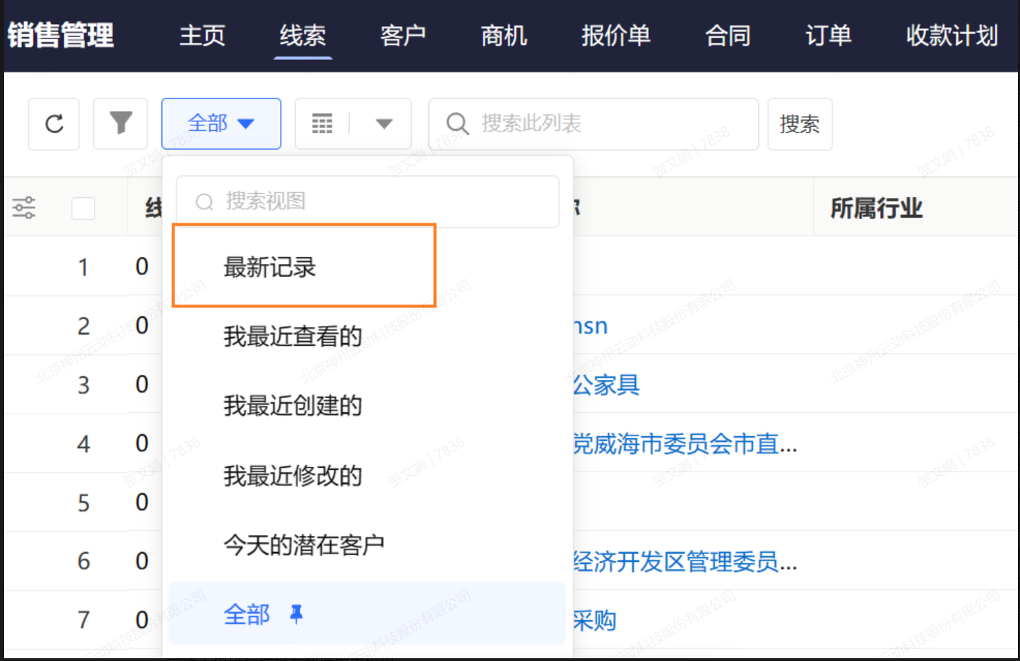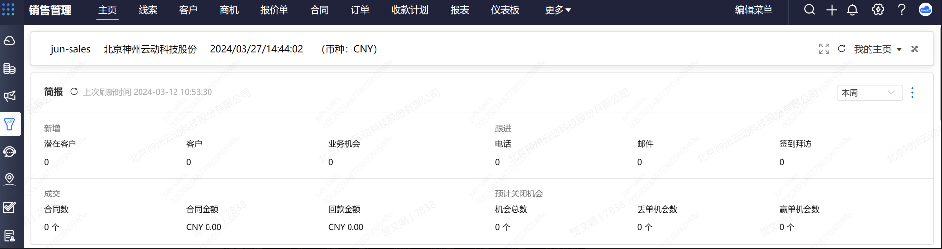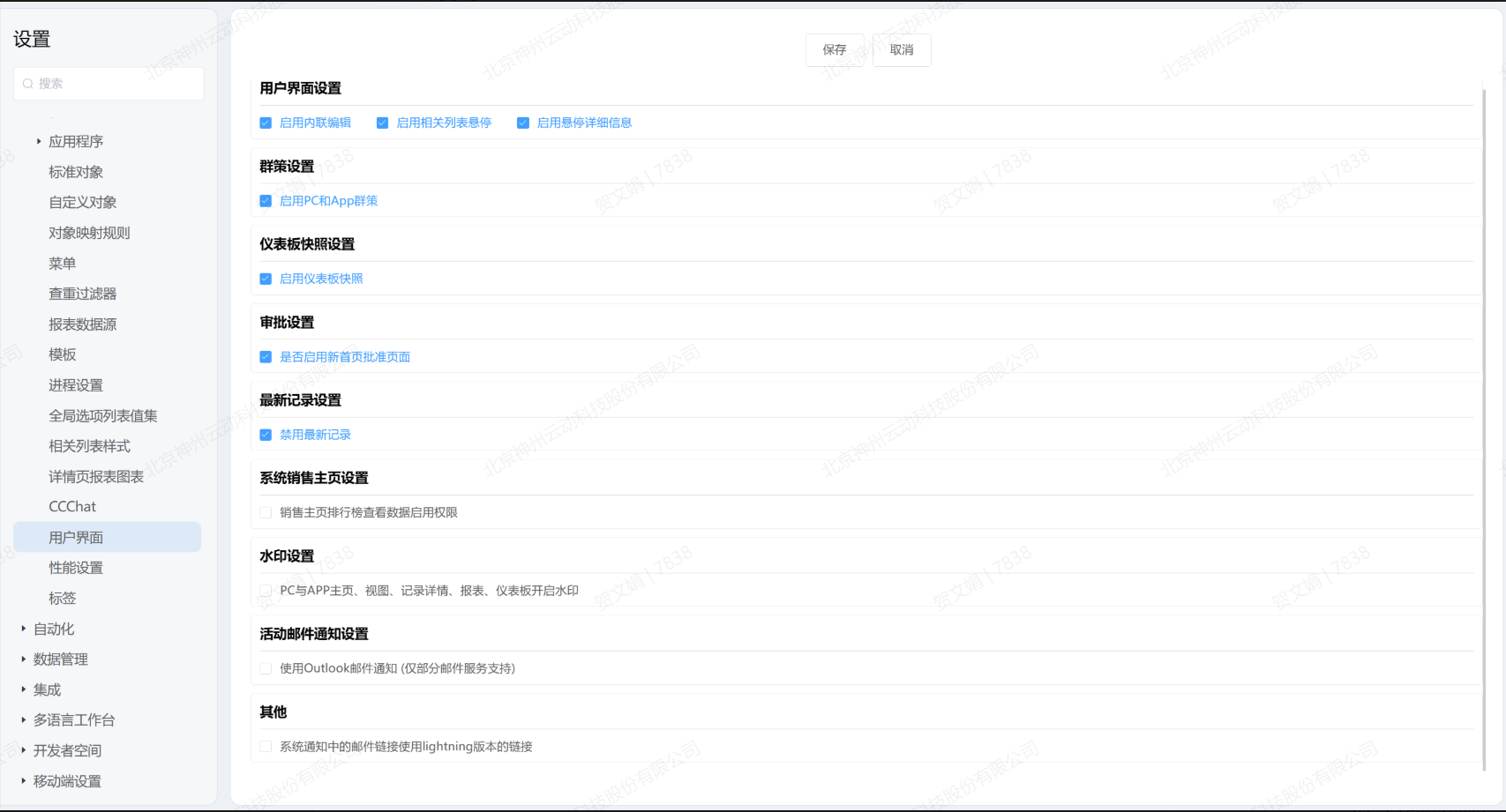 PC与APP 主页、视图、记录详情页、报表、仪表板开启水印。启用后,将展示水印。