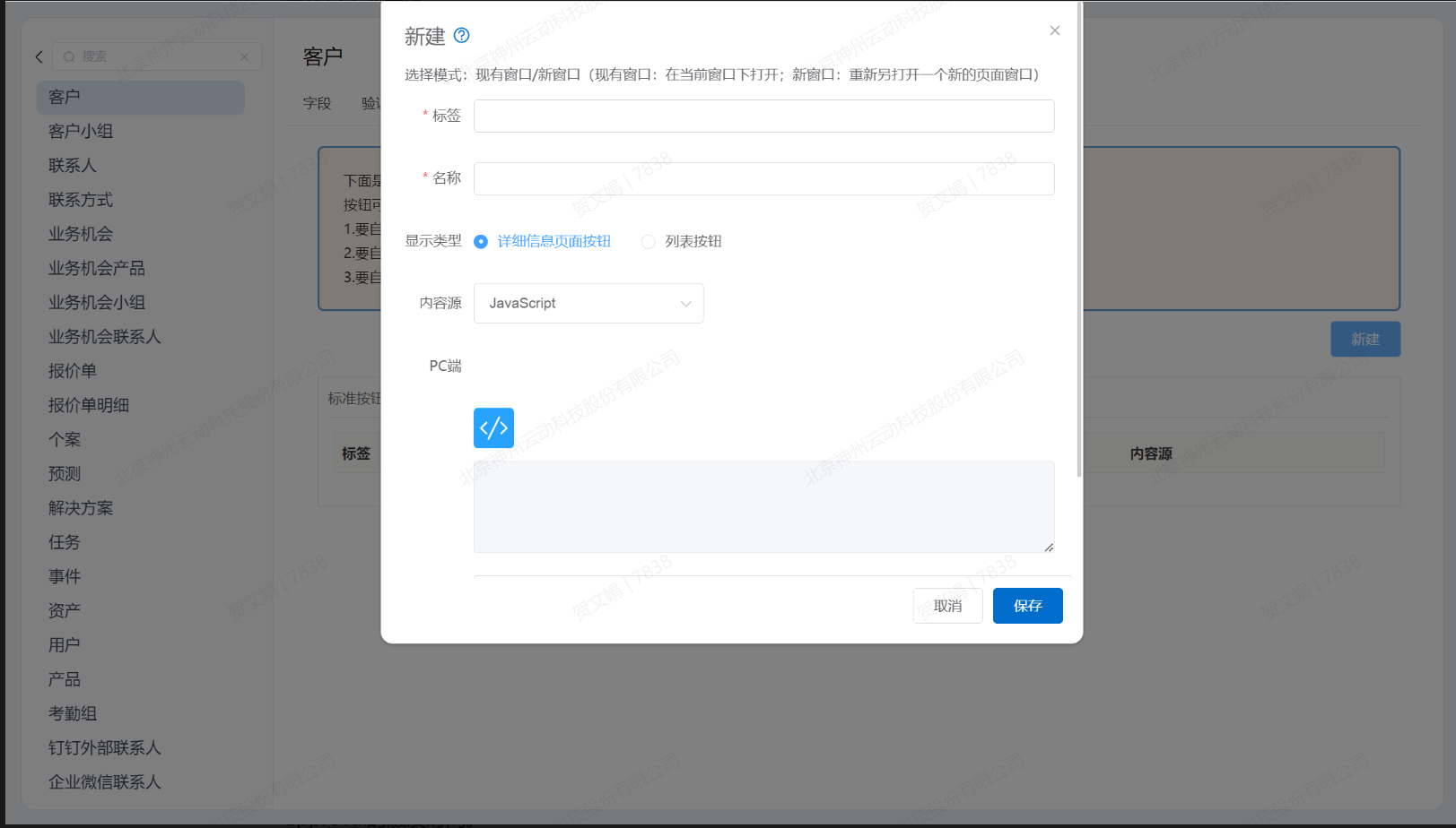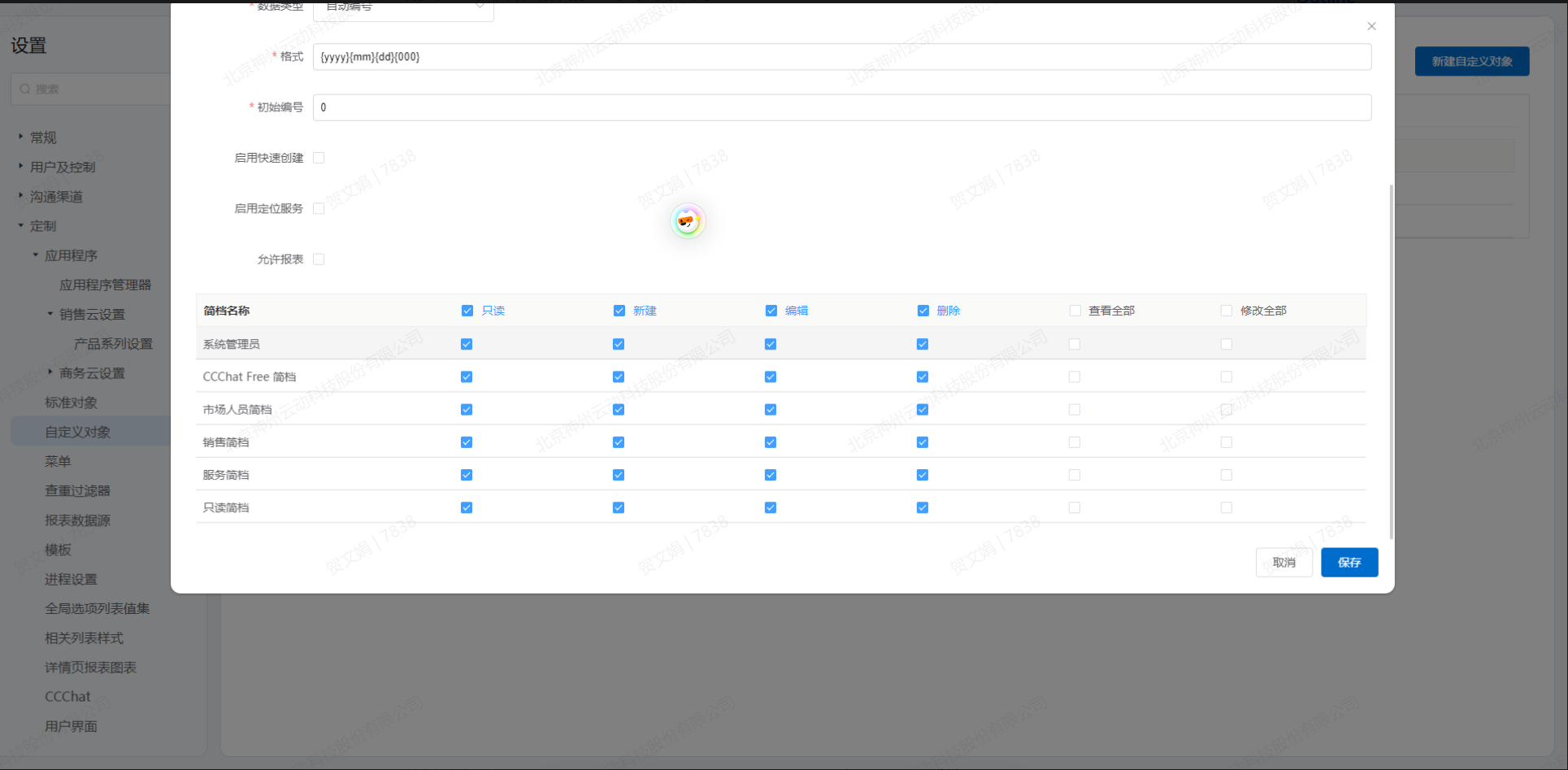 - 点击“新建自定义对象”打开新建自定义对象弹窗并填写所需信息