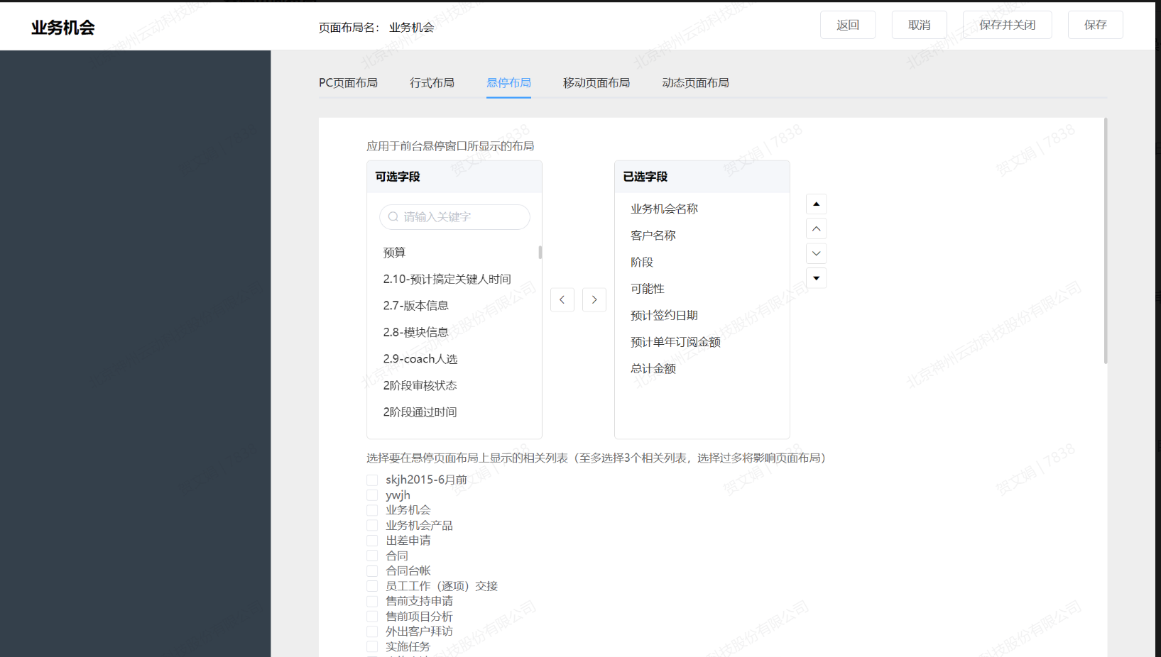 - 选择关键信息布局字段:设定在关键信息布局上显示的字段。