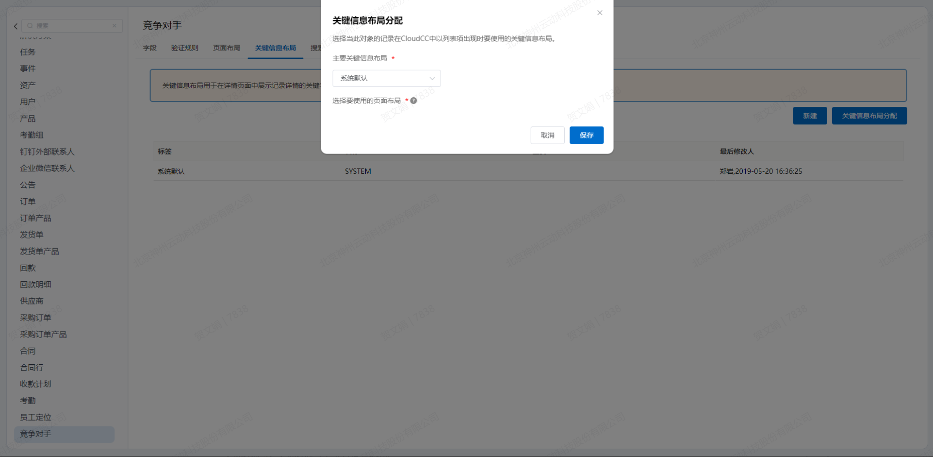 使用该项可创建/调整各种页面布局以显示对象数据,可执行页面布局,行式布局,悬停页面布局,移动页面布的调整。在创建页面布局之后,单击“页面布局分配”,以控制用户在默认情况下看到哪个页面布局。