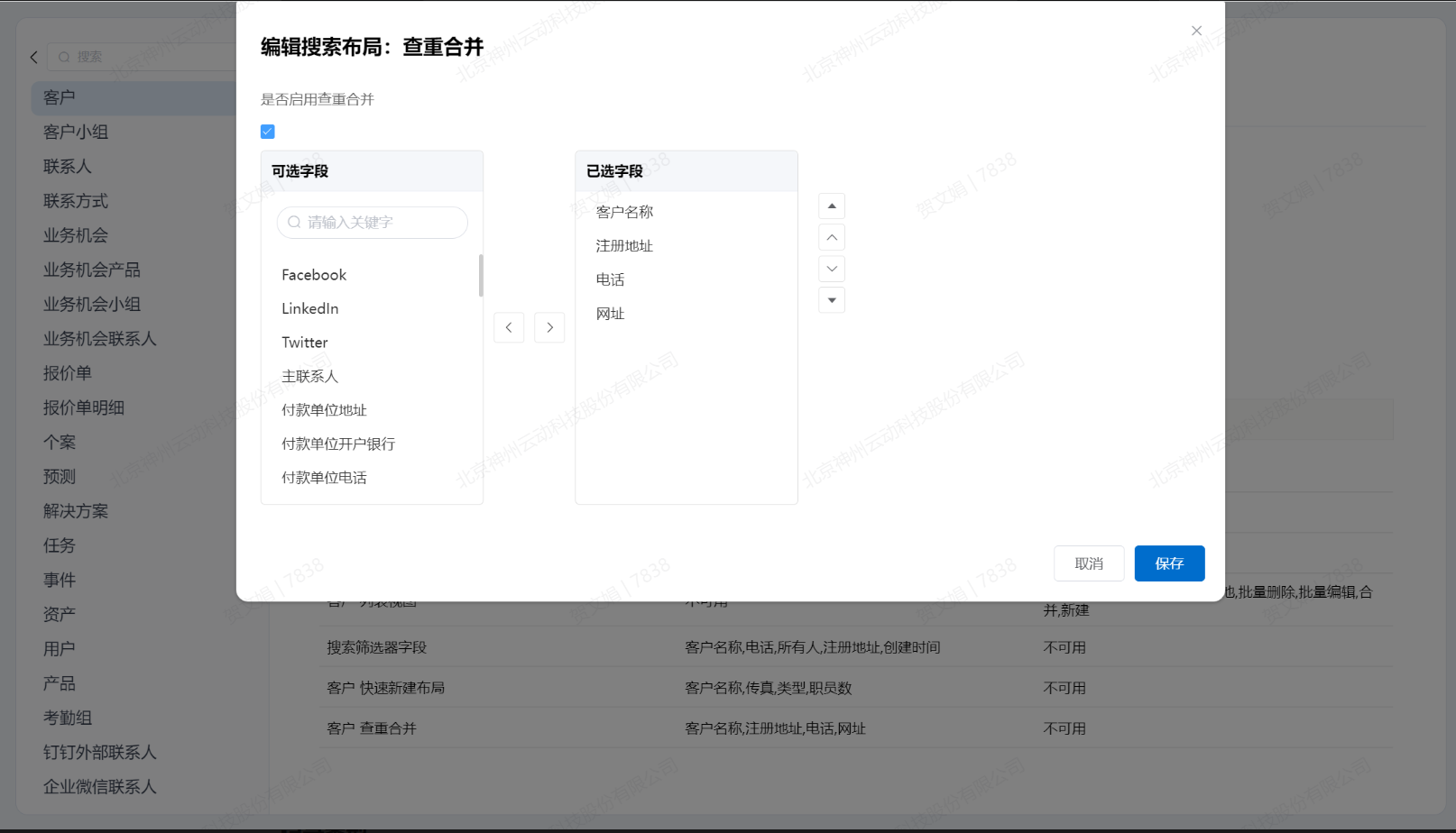 - 查重合并:点击菜单下的查重合并链接显示的查重字段。