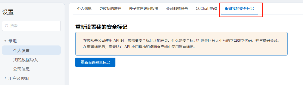 3.2.1 安全标记来自于个人设置里的“重置我的安全标记”,会发到当前登录账号的邮箱里。