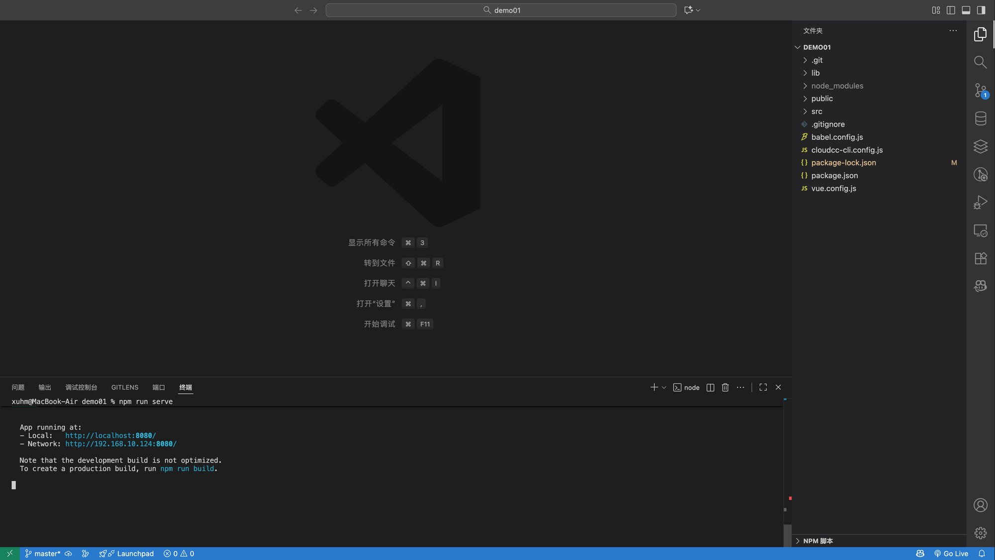 npm i- 安装完成后,运行项目,在终端中执行命令