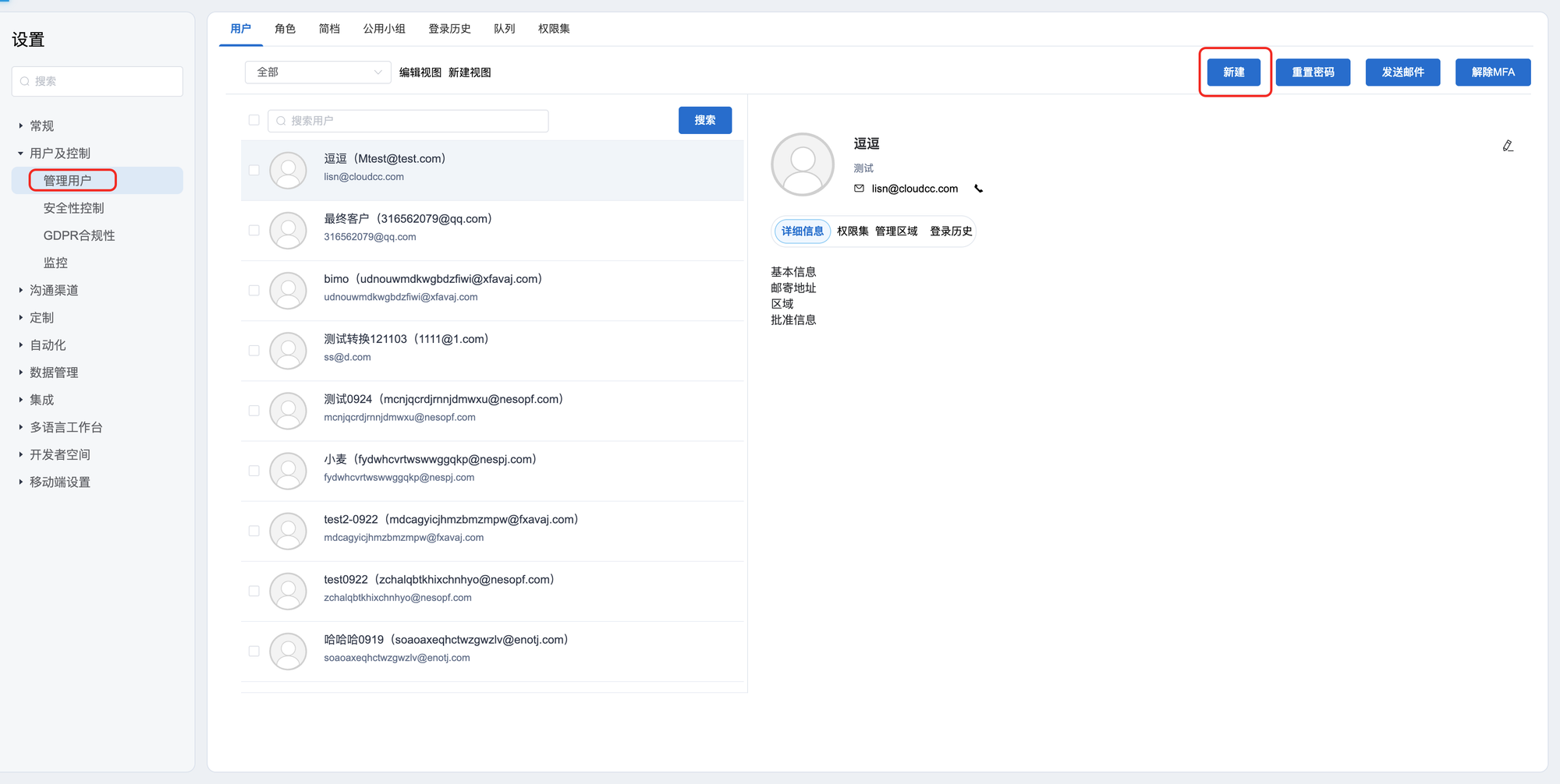 2:选择菜单中的:用户管理——新建
