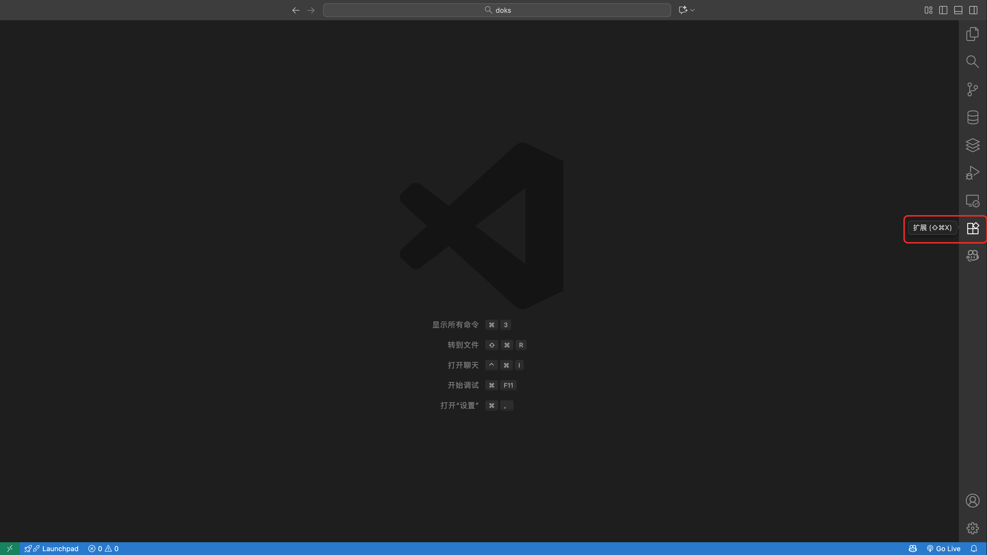 - 打开安装完成的vs code,点击扩展图标