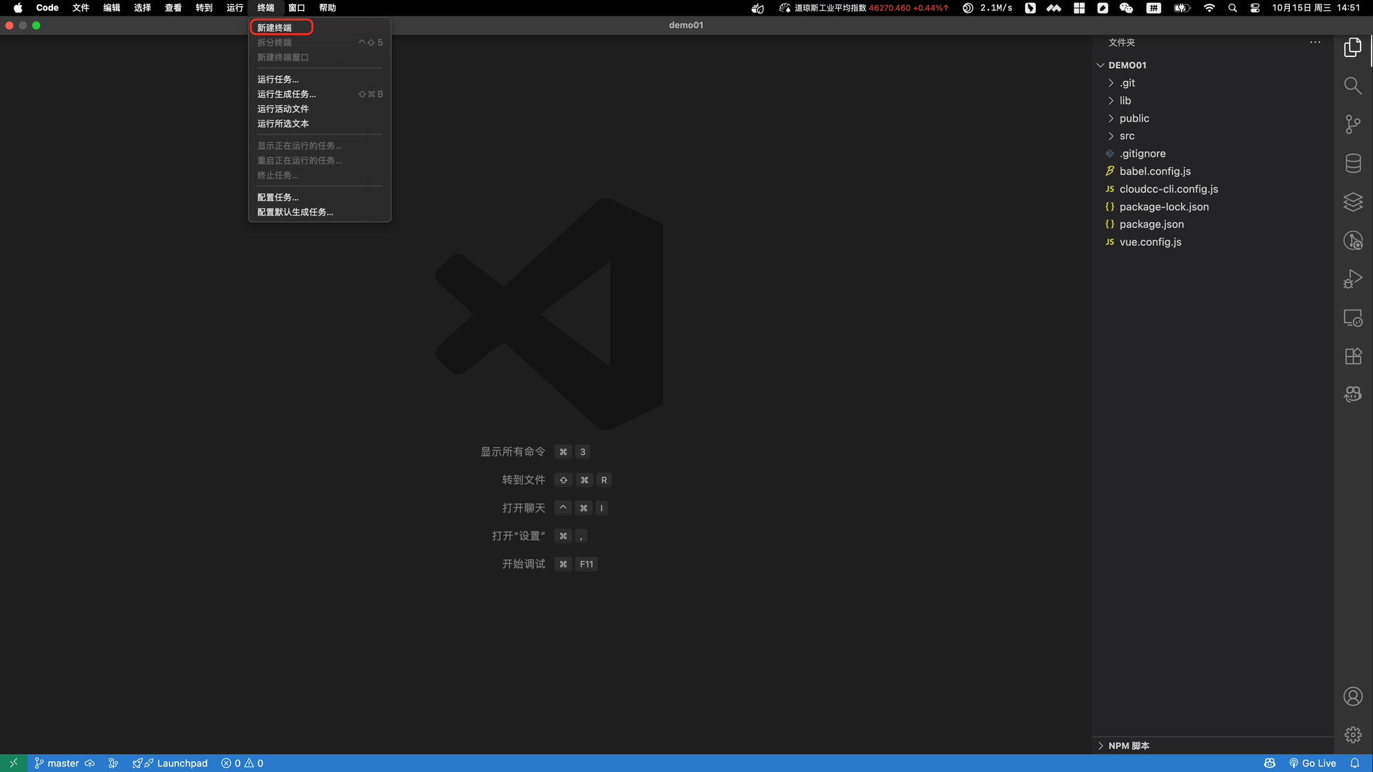 - 选择菜单里中的:终端——新建终端