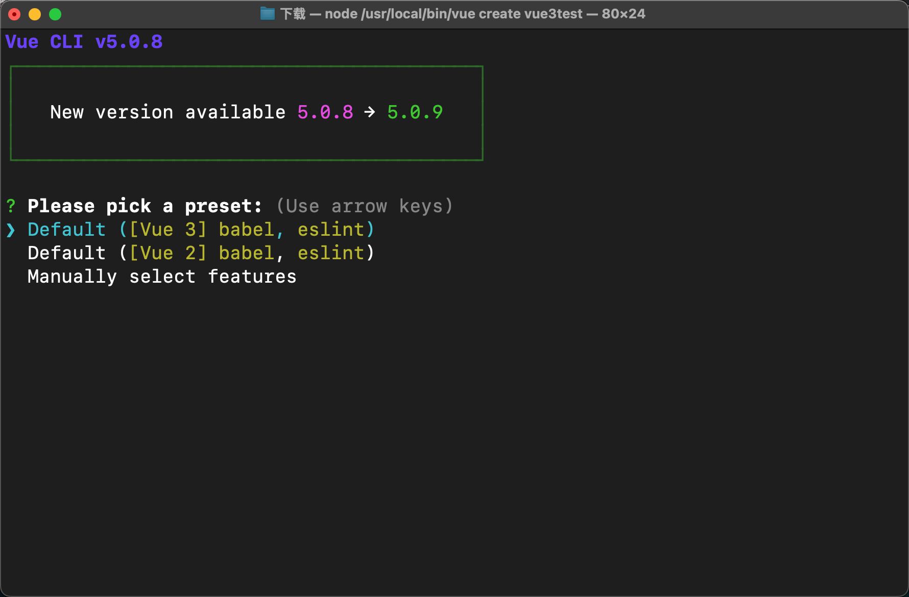 vue create myVue3选择vue3