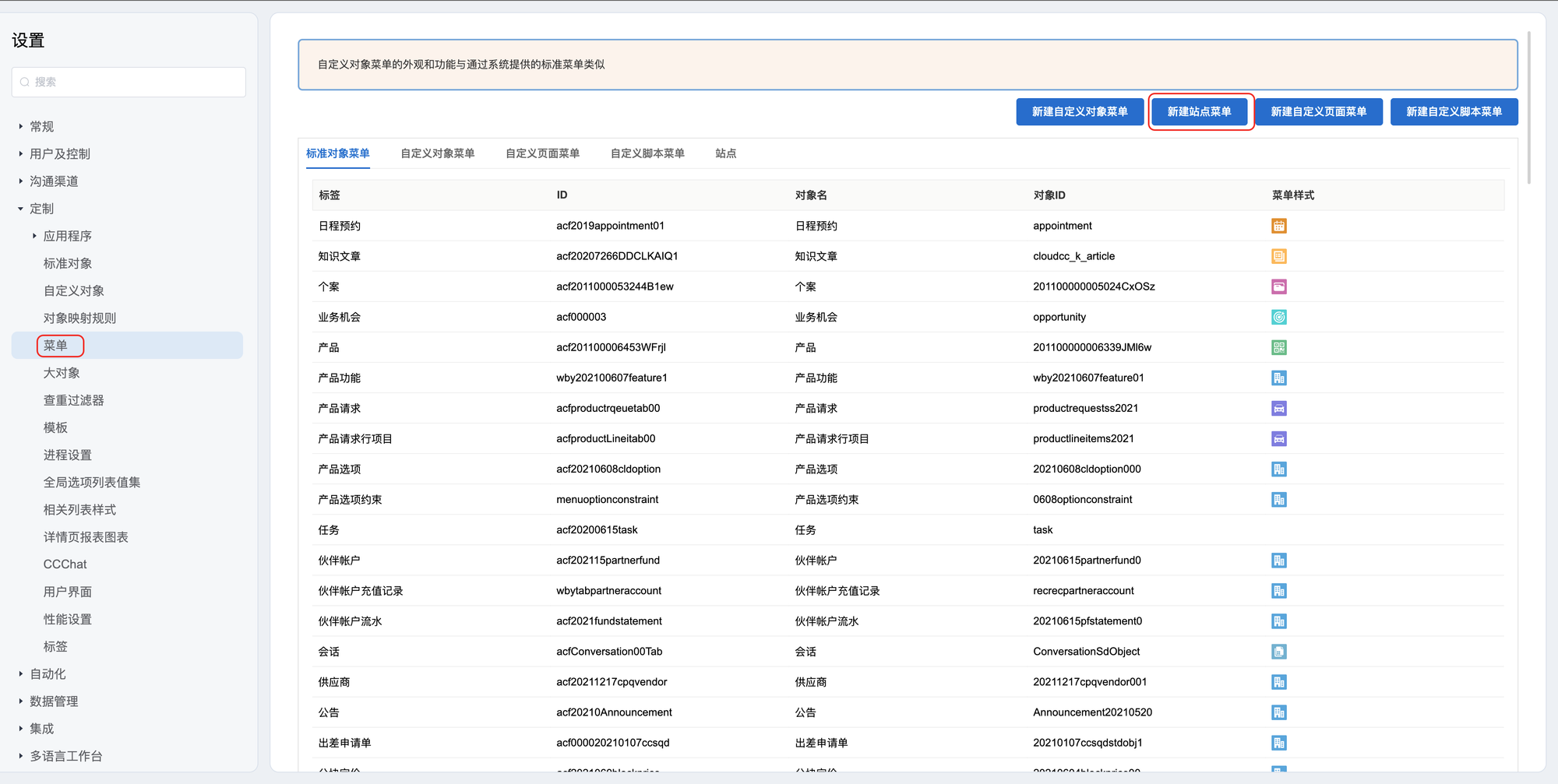 - 站点菜单。进入后台设置定制——》菜单